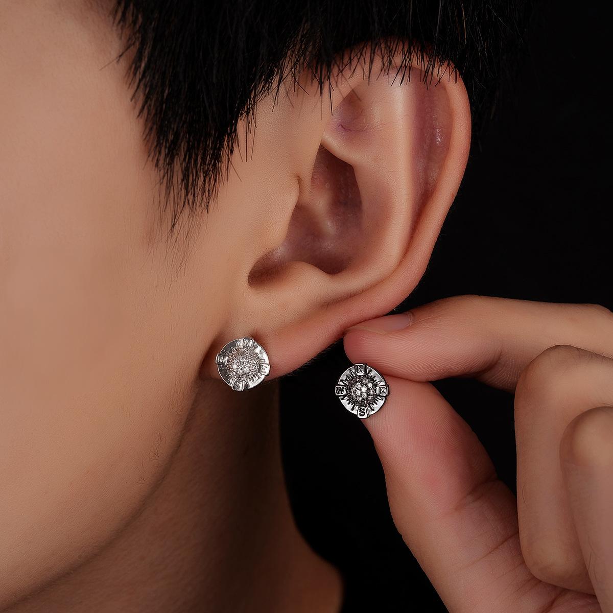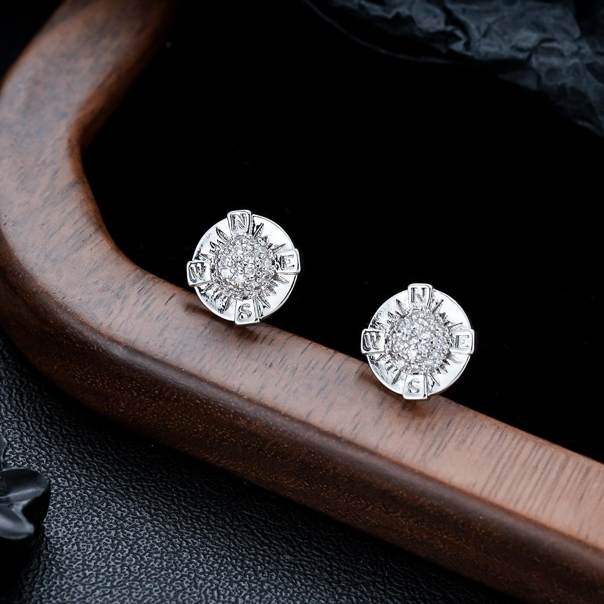 Aretes de Tachuela de Pedrería Moda de Tendencia para Hombre Versátiles Aretes Redondos de Diamante Completo Accesorios de Puños para Oreja de Lujo Ligero de Alta Gama para Mujer Venta al por Mayor