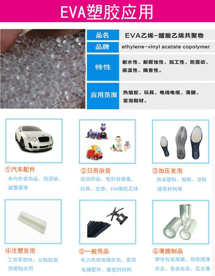 Los materiales EVA de DuPont son conocidos por su excelente rendimiento y amplia gama de aplicaciones. Los materiales EVA tienen suavidad, tenacidad, transparencia y buena estabilidad química, y son adecuados para diversos métodos de procesamiento como moldeo por soplado, extrusión, película fundida y película coextruida. Los productos EVA de DuPont incluyen varios grados, que, según el contenido de VA y el índice de fluidez, son adecuados para diferentes escenarios de aplicación, como adhesivos termofusibles, capas de aislamiento de cables, materiales de embalaje, etc.