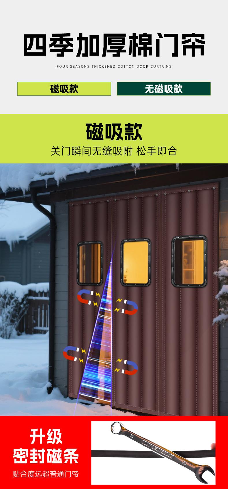 Cortina de puerta de algodón invierno cálida a prueba de viento magnética autocebante cortina de puerta de pu engrosada aislamiento acústico a prueba de frío supermercado tienda comercial