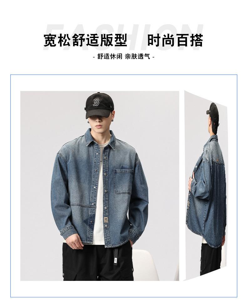 Chaqueta de mezclilla pesada americana para hombre, primavera y otoño, nueva tendencia, marca, guapo, chaqueta de trabajo, holgada, talla grande, camisa de otoño