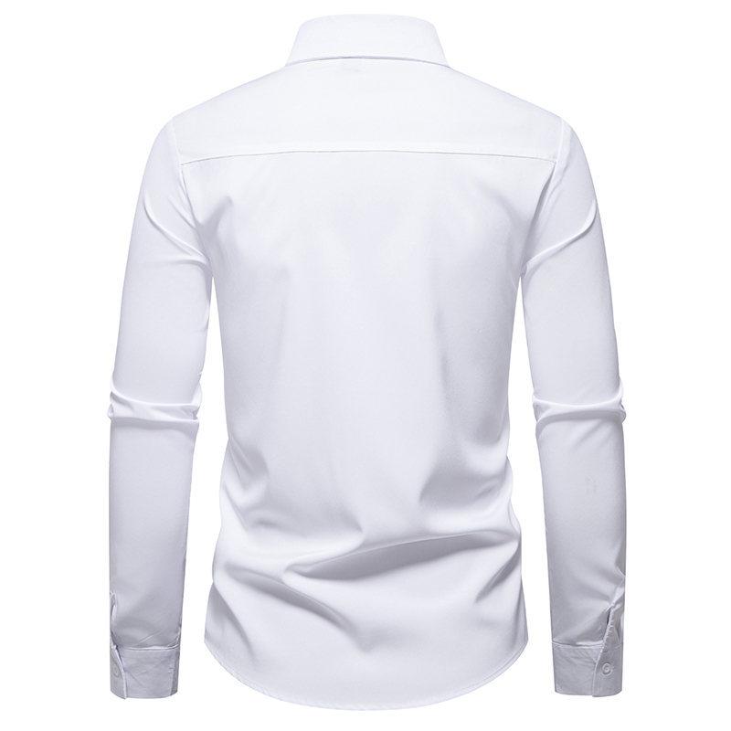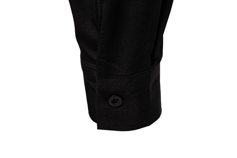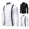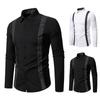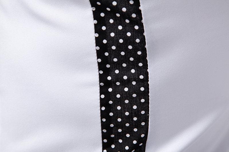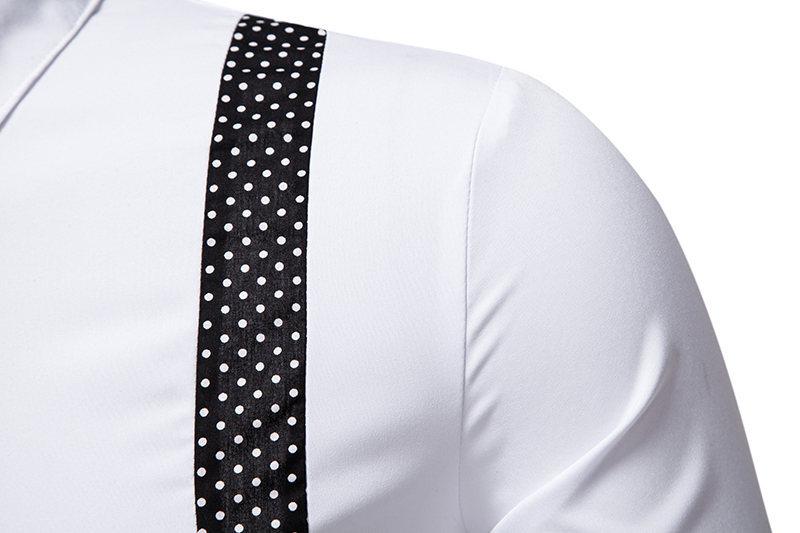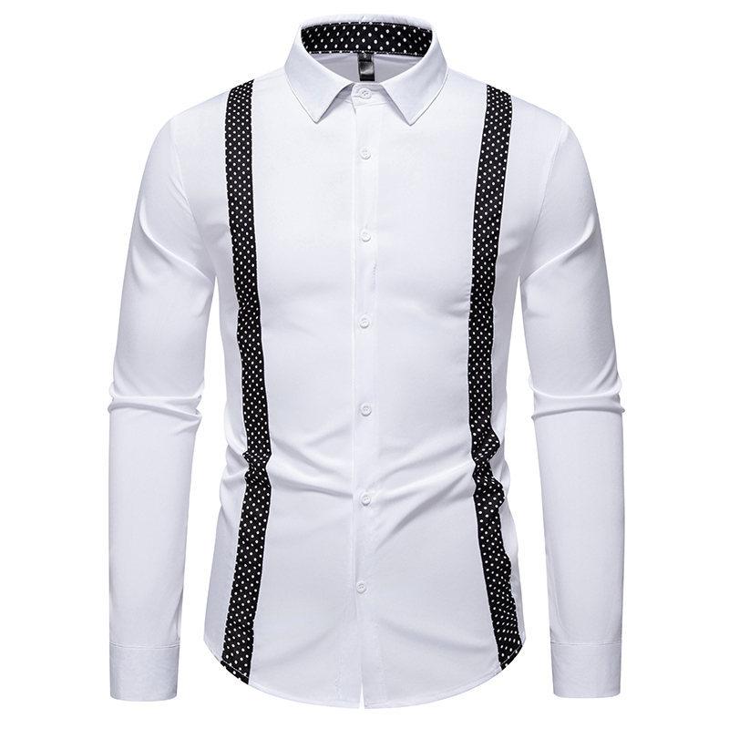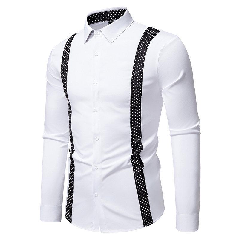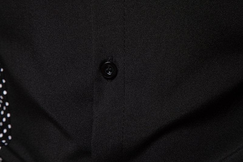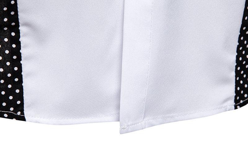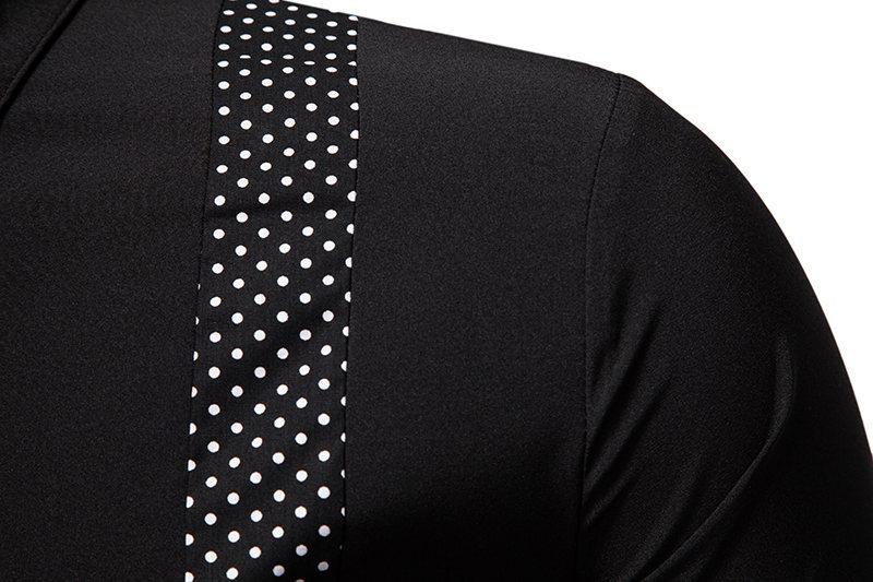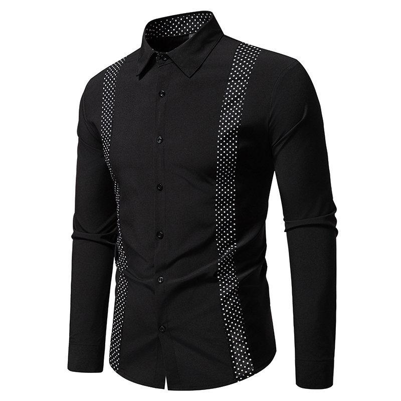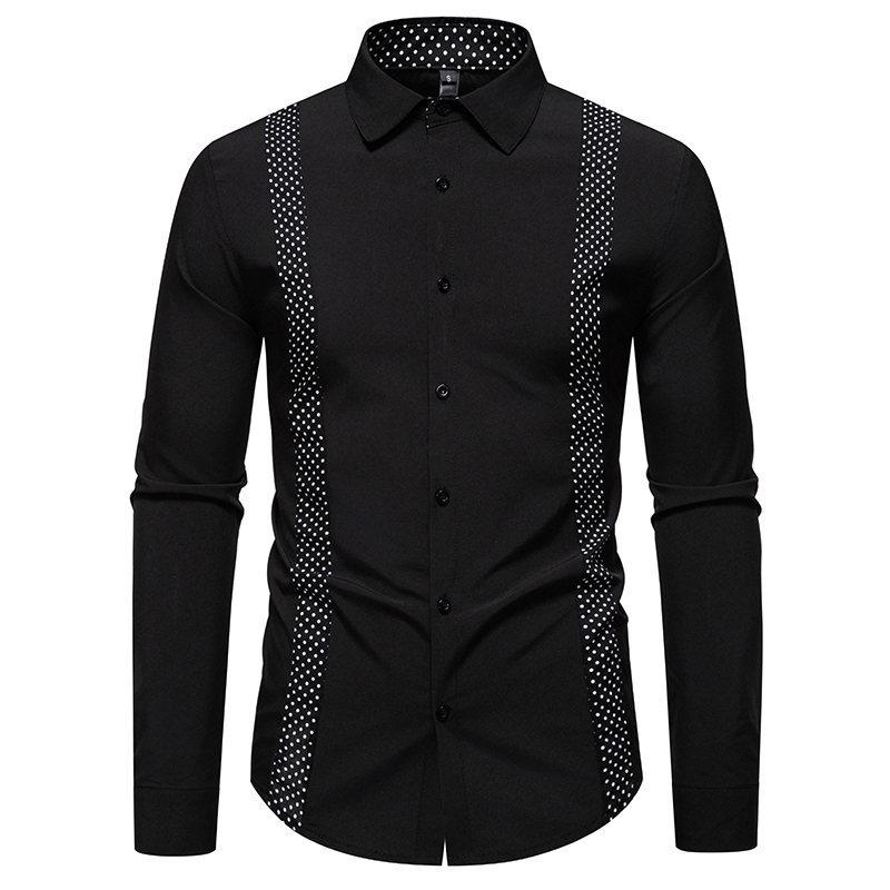 Camisa de negocios nueva de otoño 2025 transfronteriza para hombre, camisa de diseño de bloques de color con lunares blancos y negros para hombre, ropa de trabajo casual de manga larga