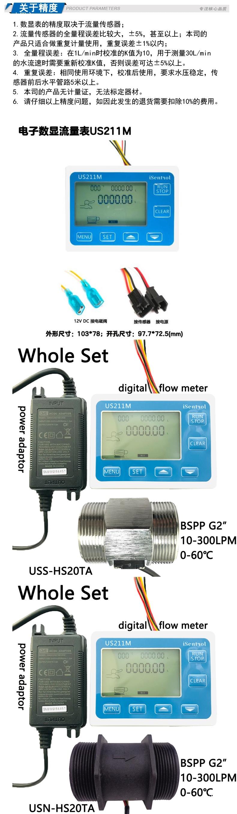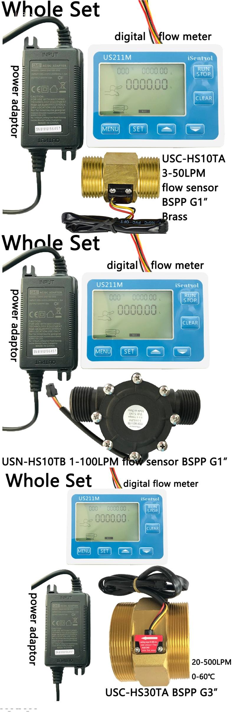 3 digital display + 24v power supply + 1inch stainless steel stainless steel 3-50lpm