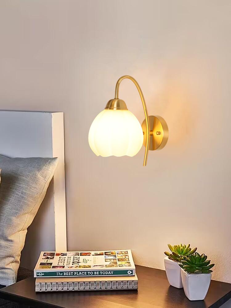 Lámpara de pared led de latón de noche moderna simple dormitorio estilo francés luz lujo sala de estar fondo de TV pasillo escalera lámpara de pared