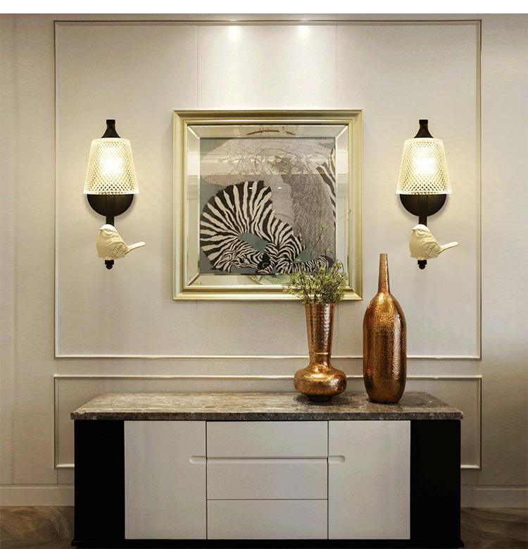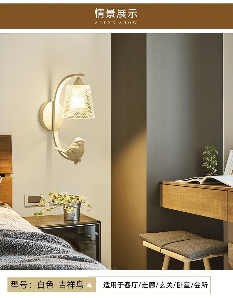 Lámpara de pared nórdica para sala de estar, luz de lujo, simple, moderna, lámpara de noche para dormitorio, nueva, creativa, personalidad, pájaro, lámpara de pared de fondo
