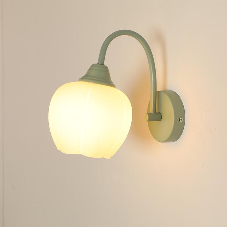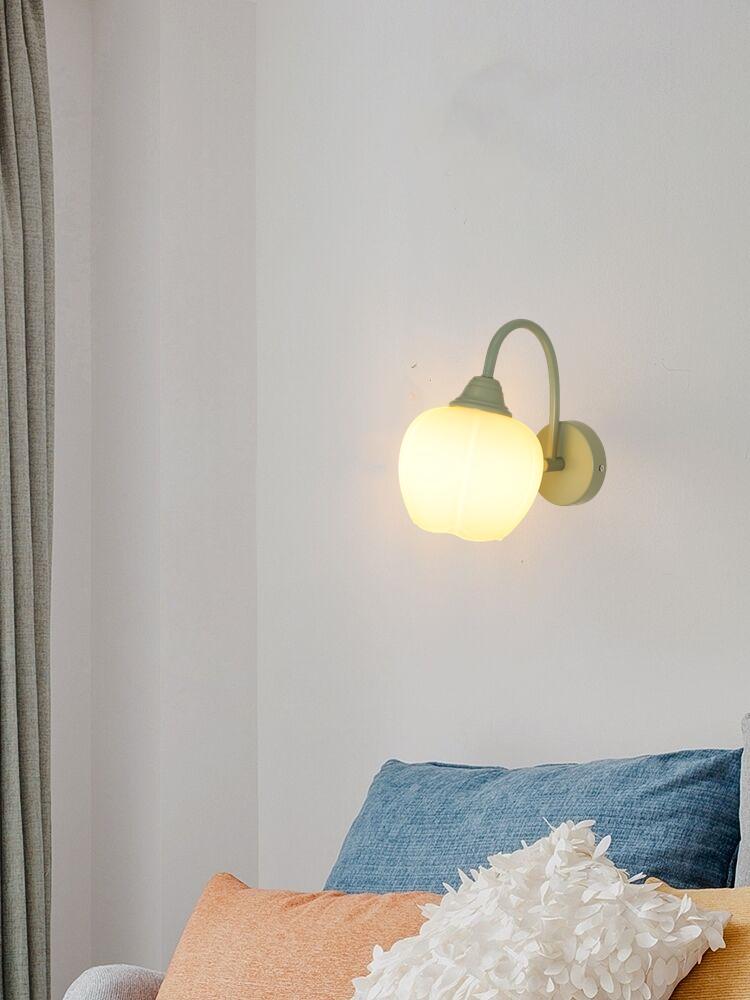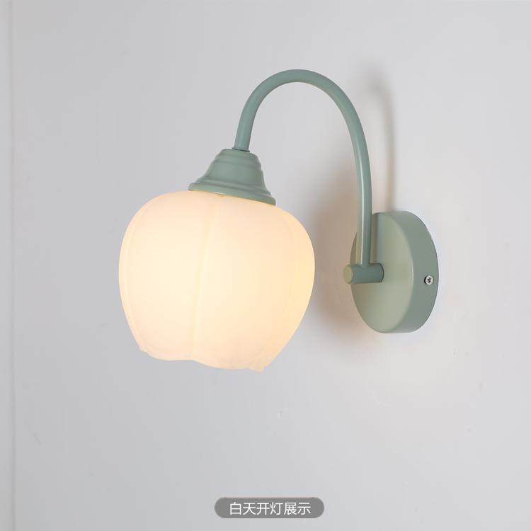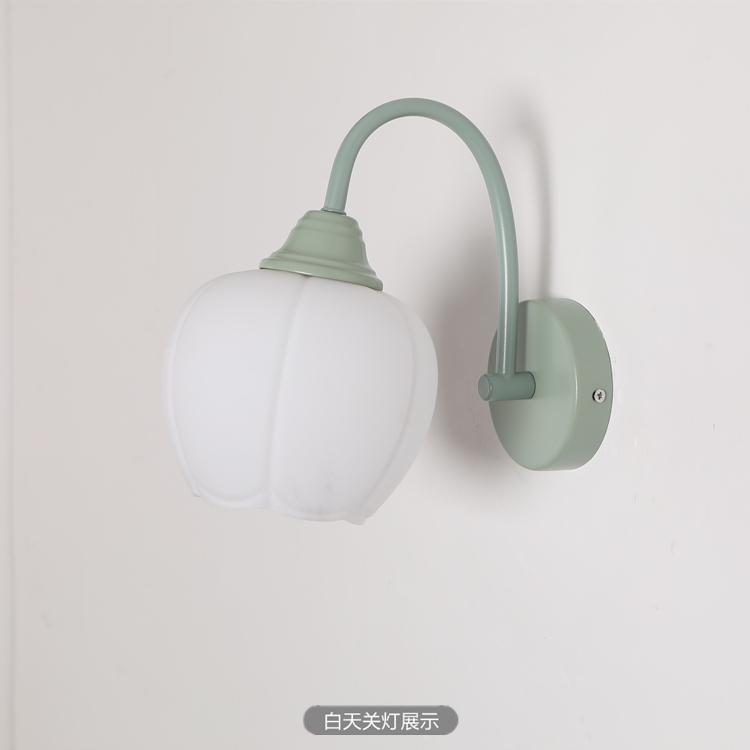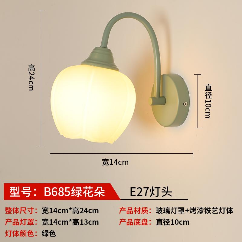 Nueva Lámpara de Noche para Dormitorio Lámpara de Pared de Fondo para Sala de Estar Flor Verde Simple Moderna Estilo Crema Lámpara de Pared para Pasillo de Escaleras