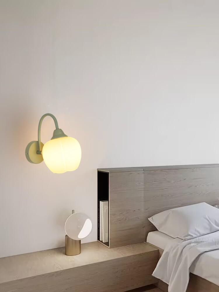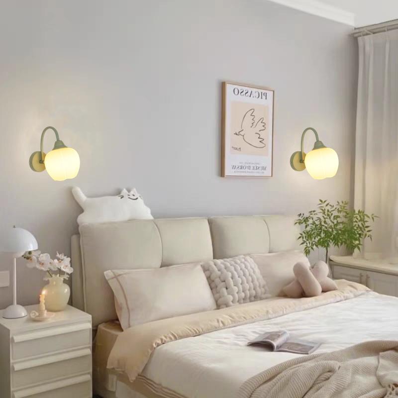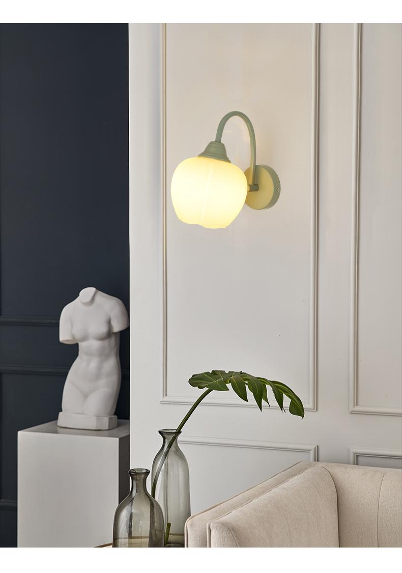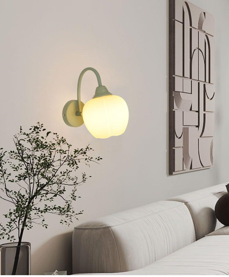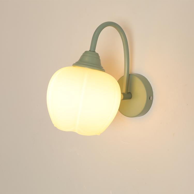 Nueva Lámpara de Noche para Dormitorio Lámpara de Pared de Fondo para Sala de Estar Flor Verde Simple Moderna Estilo Crema Lámpara de Pared para Pasillo de Escaleras