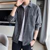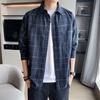 Camisa Nueva de Manga Larga para Hombre 2023 Estilo Coreano Juvenil Casual Retro Suelta Solapa Rayada Cuadros para Hombre