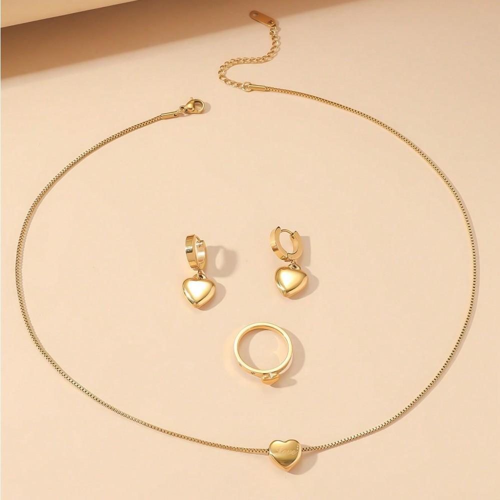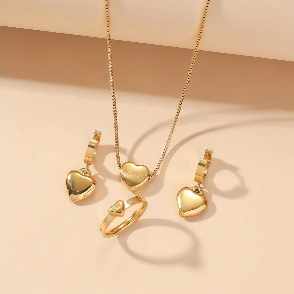 Retro Simple Transfronterizo Letra Amor Serie Collar Aretes Anillo Moda Femenina Ins Nuevo Acero Inoxidable Joyería