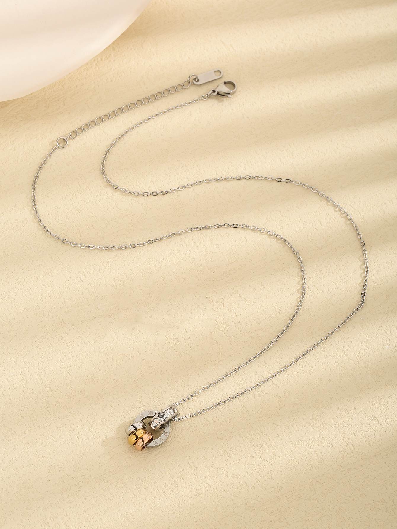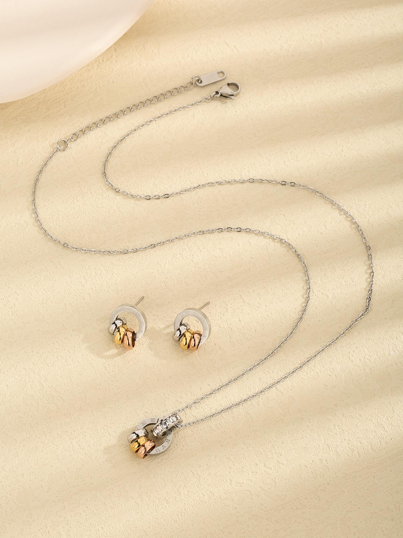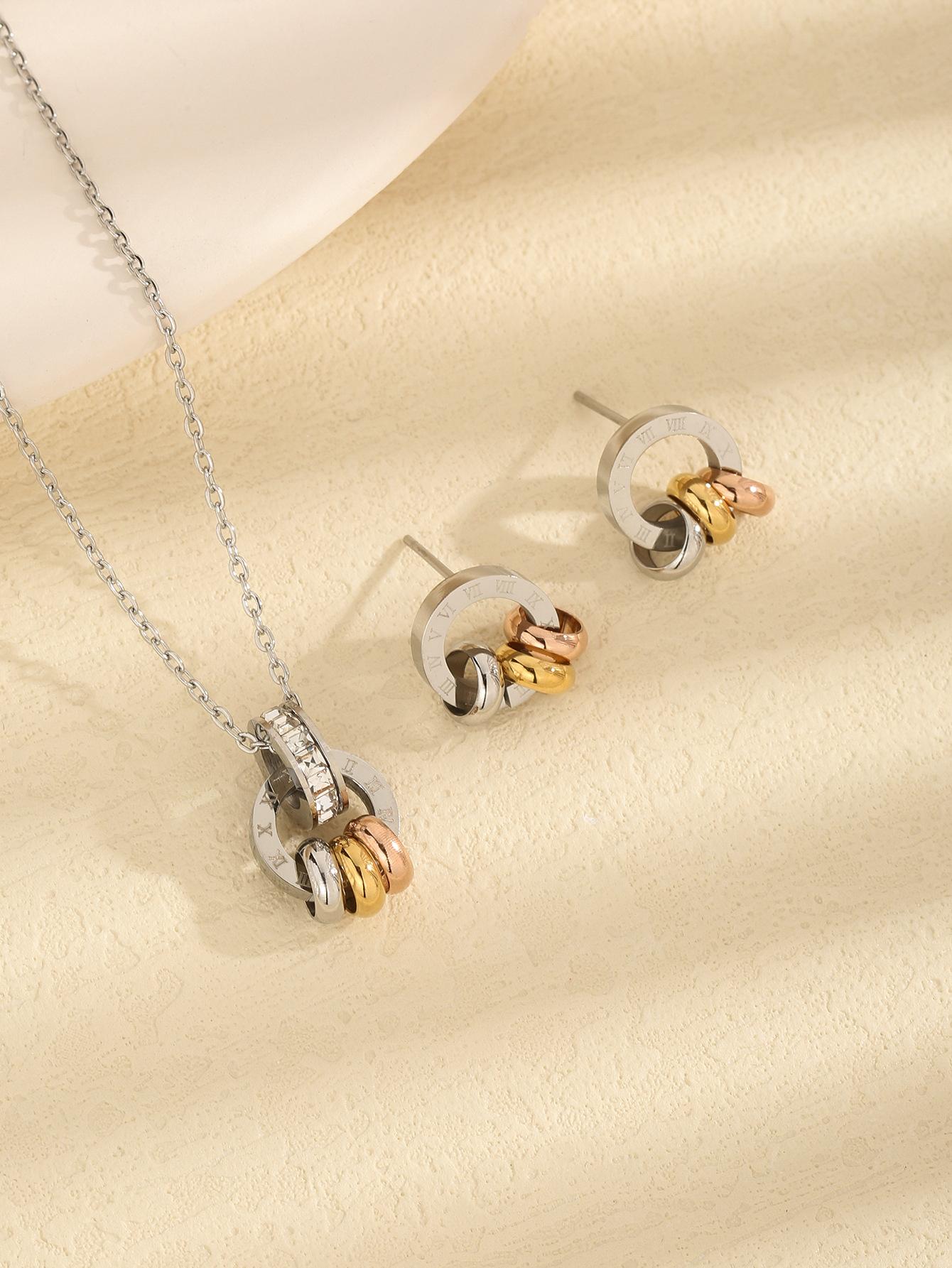 Aretes de Anillo Tricolor con Números Romanos Collar con Colgante de Diamante Traje Joyería de Acero al Titanio al por Mayor para Mujer
