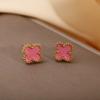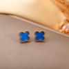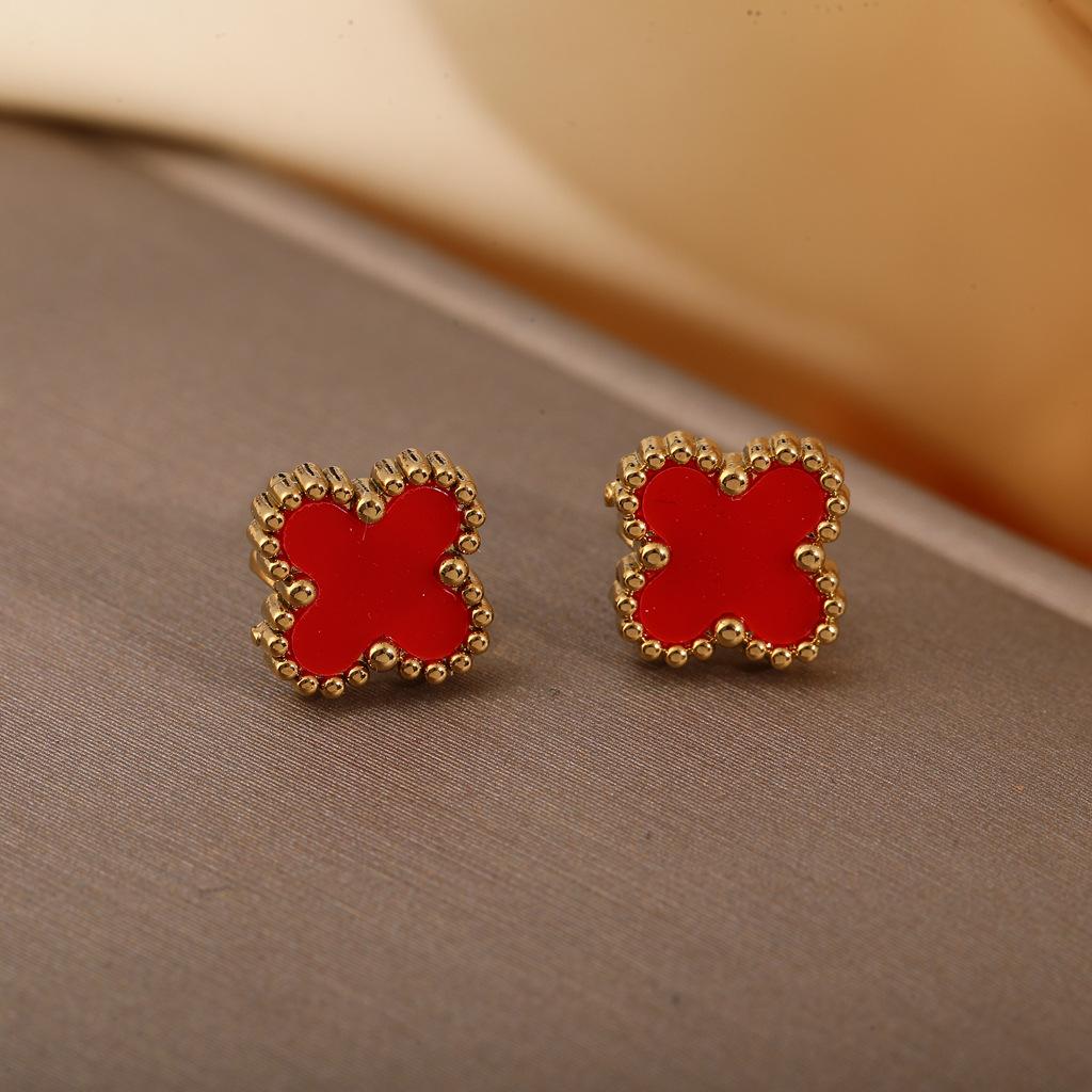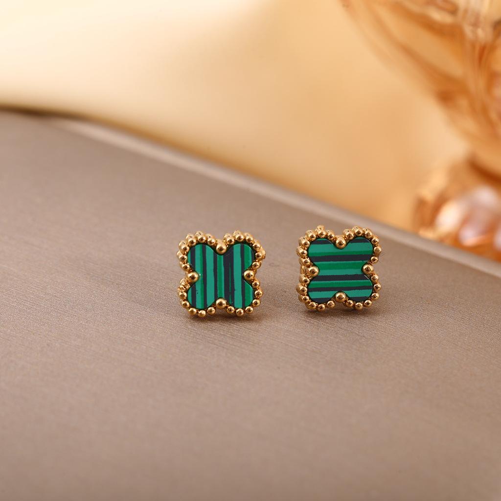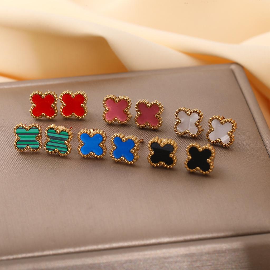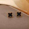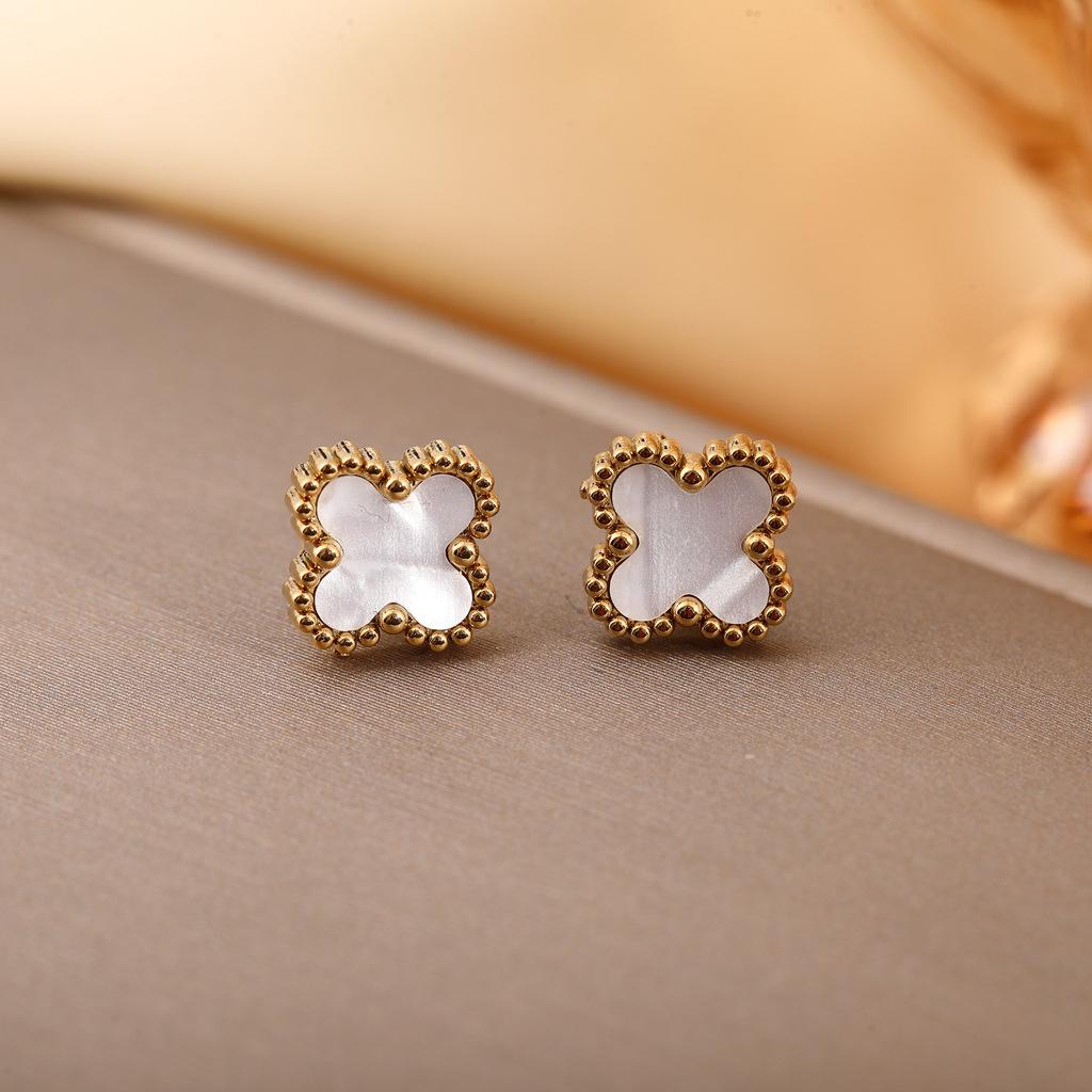Aretes Transfronterizos de Acero Inoxidable para Mujer Aretes de Trébol de Cuatro Hojas Lujo Ligero Simple Oro de 18K Pequeños y Pequeños Joyería para Oreja de Acero de Titanio