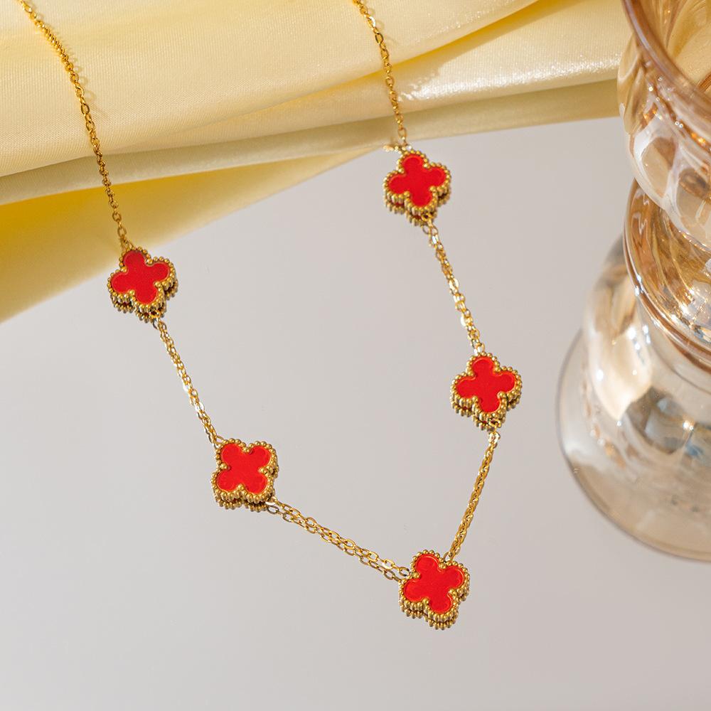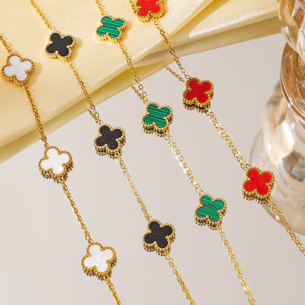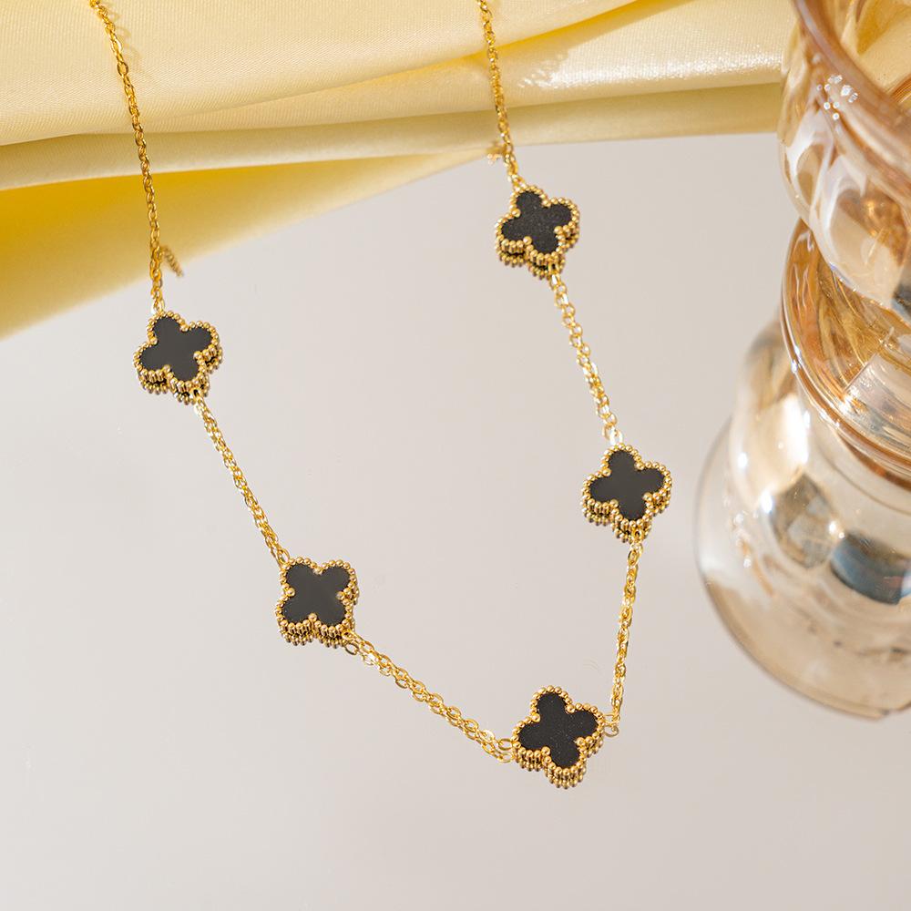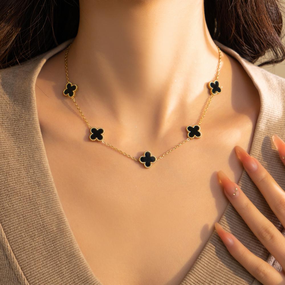 Collar de trébol de cuatro hojas para mujer de alta gama transfronterizo de acero de titanio de doble cara no se desvanece cadena para suéter de alta gama joyería de trébol de la suerte