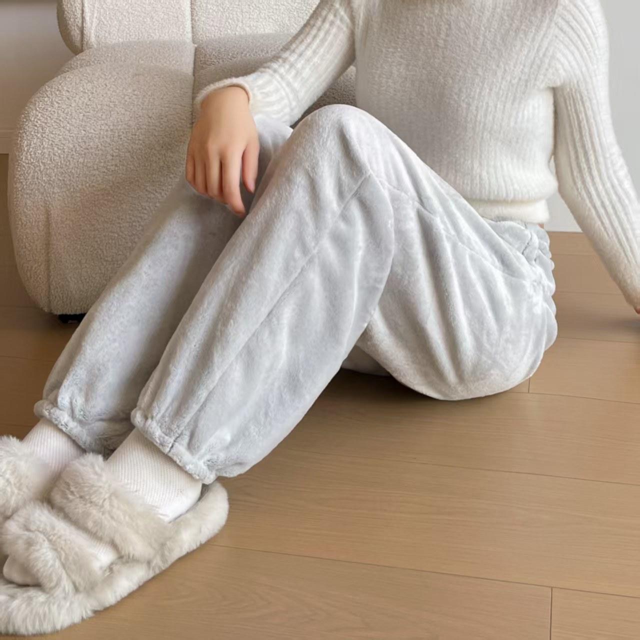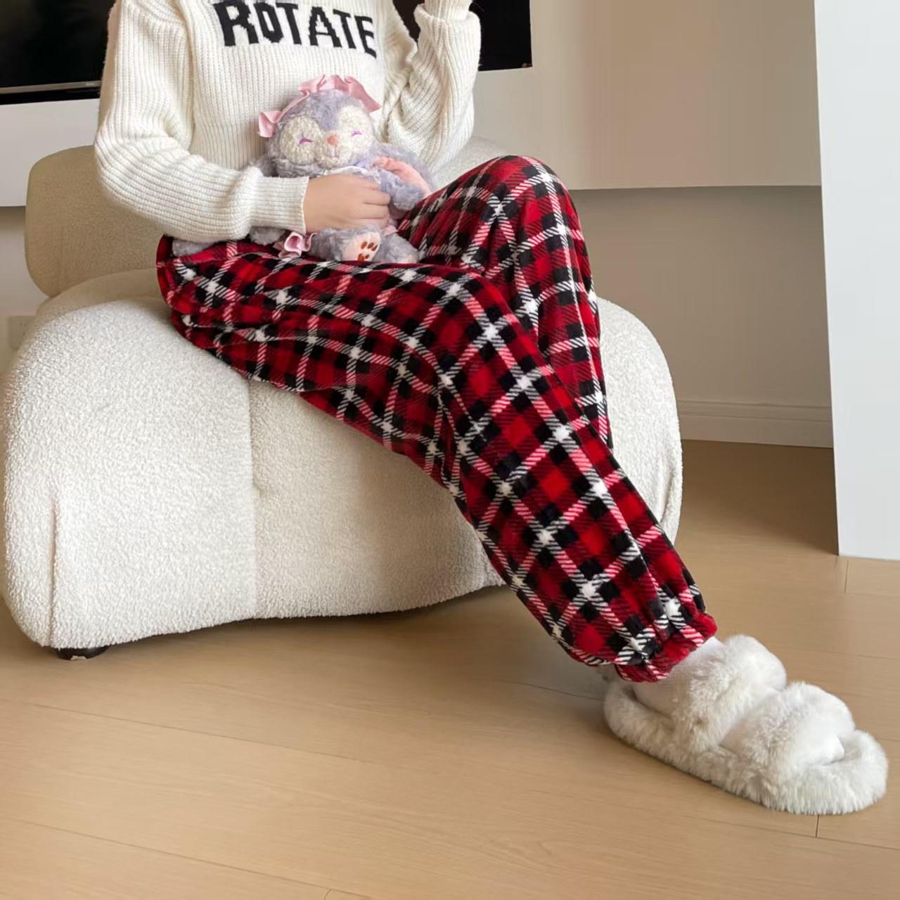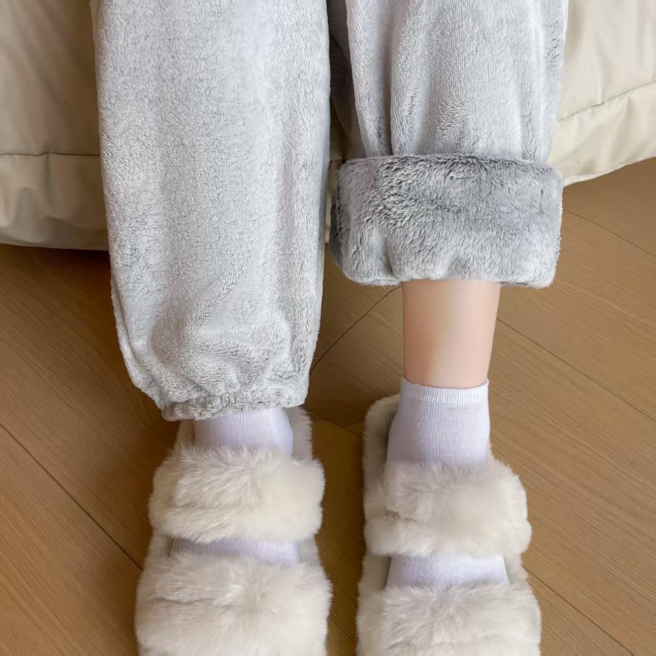 Pantalones de Pijama de Franela de Dibujos Animados para Mujer Otoño e Invierno Nuevos Vellón Coral Espesado Cálido Casual Pantalones para el Hogar para Uso Exterior