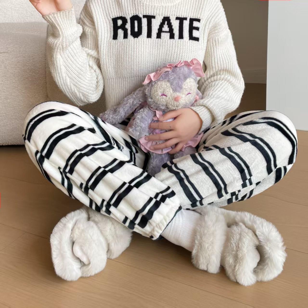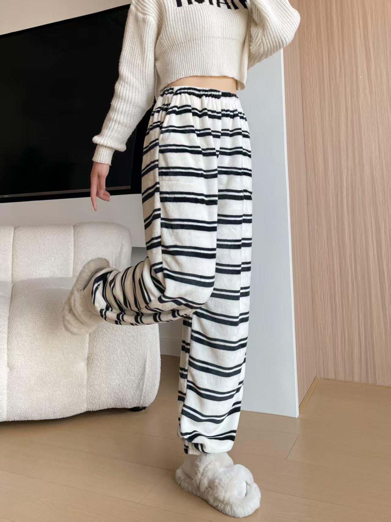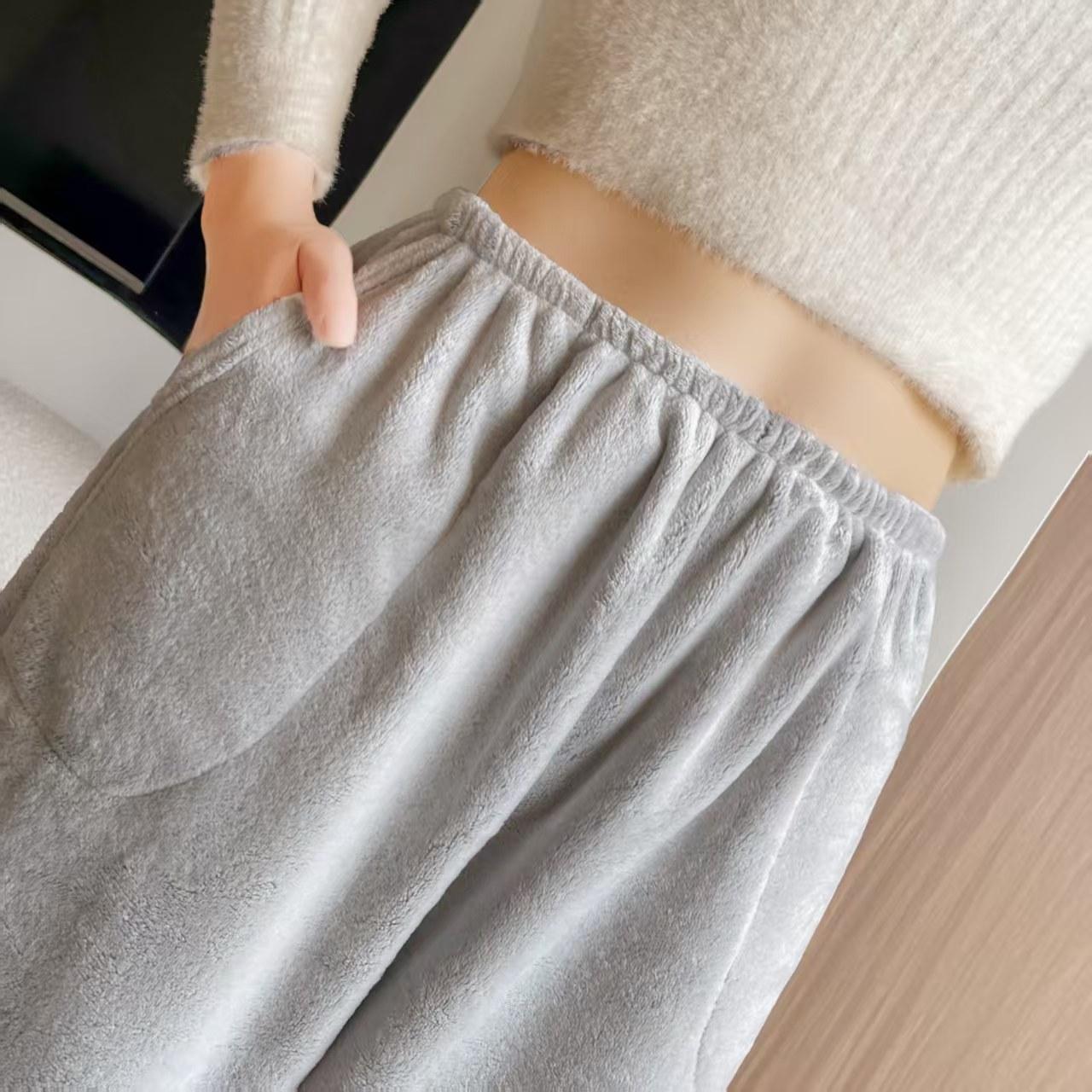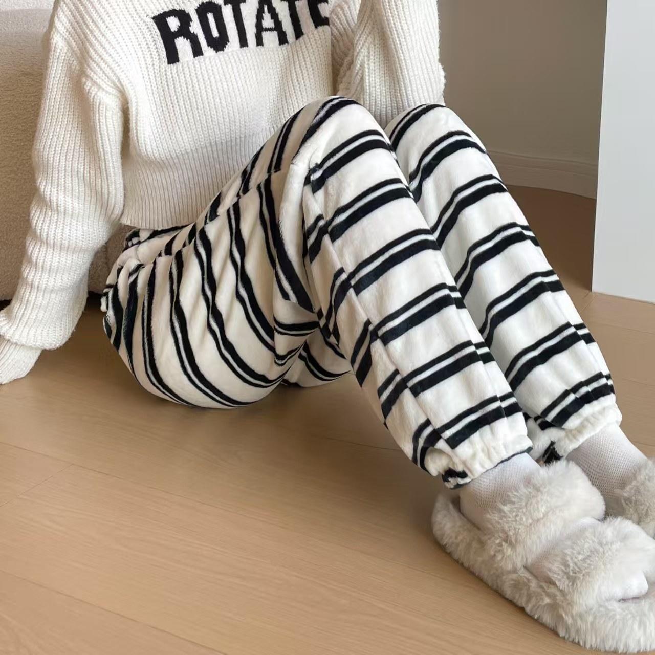 Pantalones de Pijama de Franela de Dibujos Animados para Mujer Otoño e Invierno Nuevos Vellón Coral Espesado Cálido Casual Pantalones para el Hogar para Uso Exterior