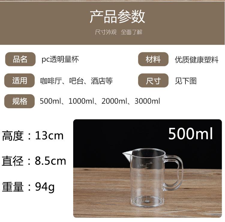 Taza medidora de plástico PC con escala especial para tienda de té con leche transparente 500 ml pequeña gran capacidad juego completo horneado alta temperatura