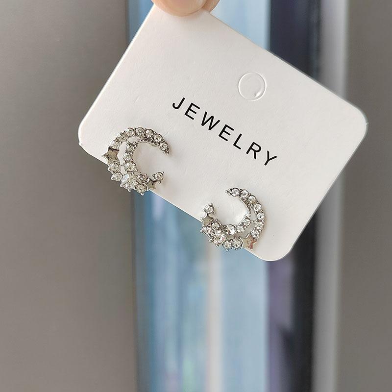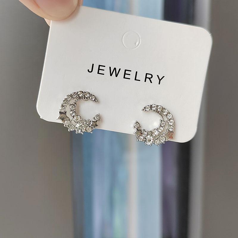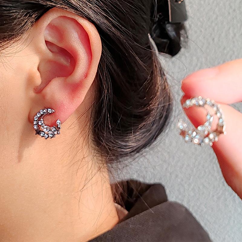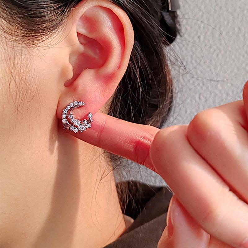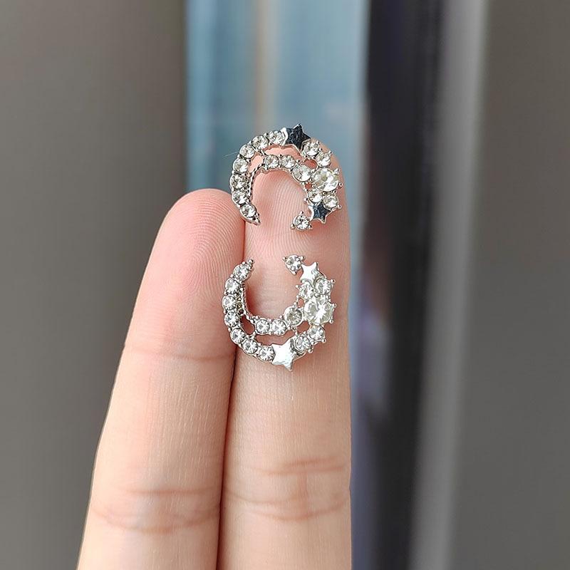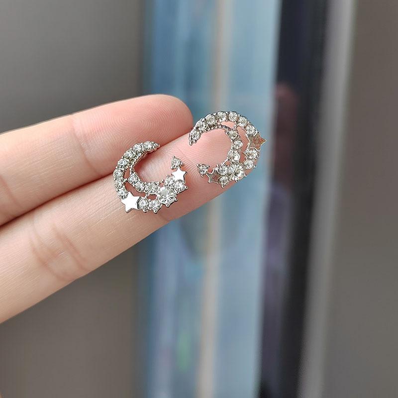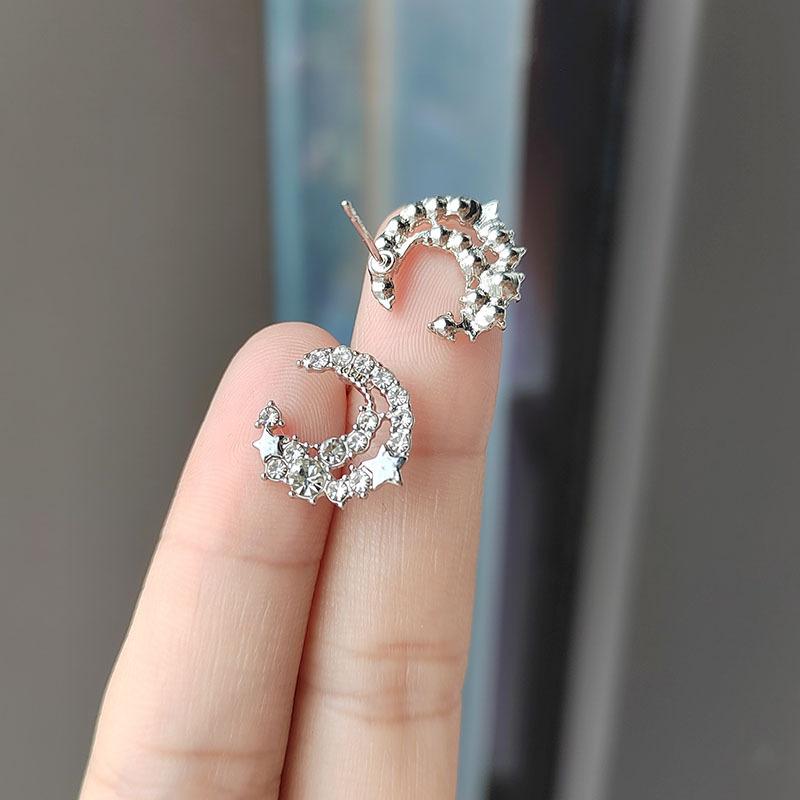 Aretes de Tuerca Únicos de Diseño de Estrella y Luna con Diamantes Completos para Mujer, Estilo Ins, Súper Hada, Aretes Simples para Mujer, Aretes Minimalistas