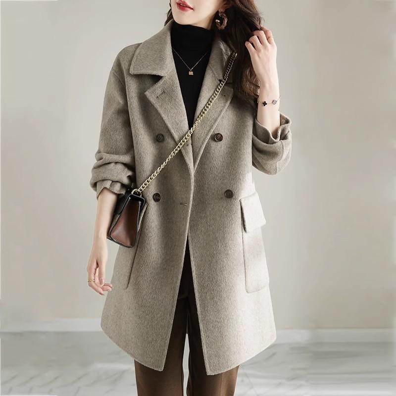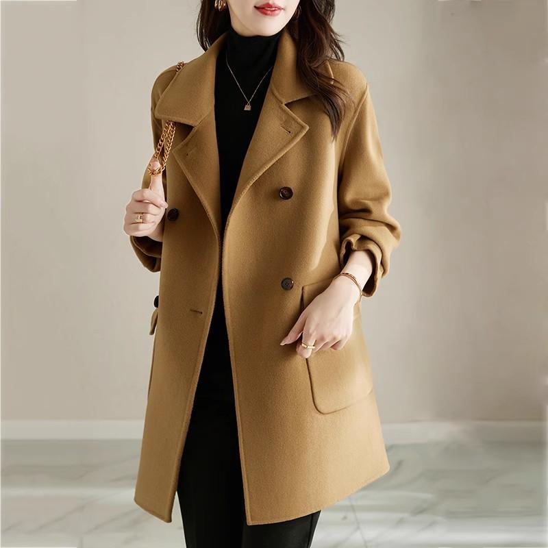 Abrigo de tweed de algodón plus para mujer 2025 otoño e invierno nuevo grueso estilo coreano corte ajustado adelgazante largo medio abrigo de lana