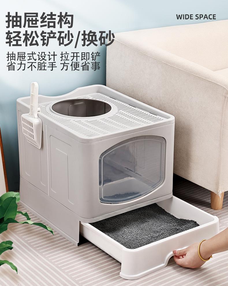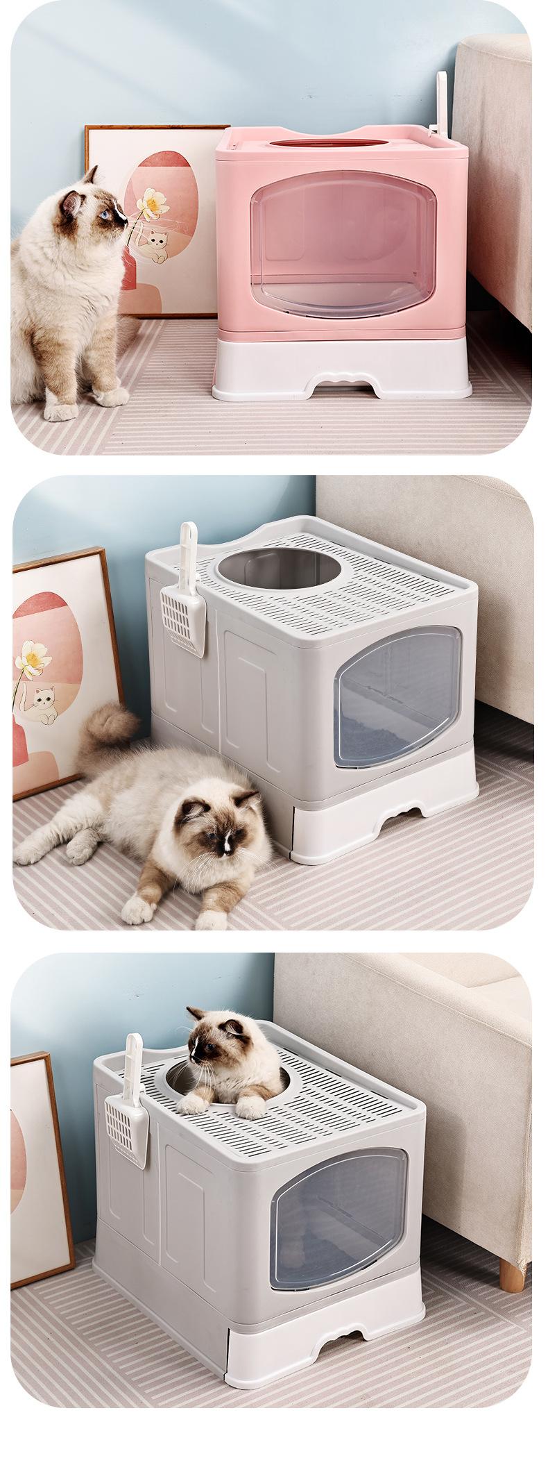 Caja de arena para gatos plegable nueva personalizada, Totalmente cerrada, Extra grande, A prueba de olores, Caja de arena para gatos que atrapa la arena, Caja de arena para gatos extra grande