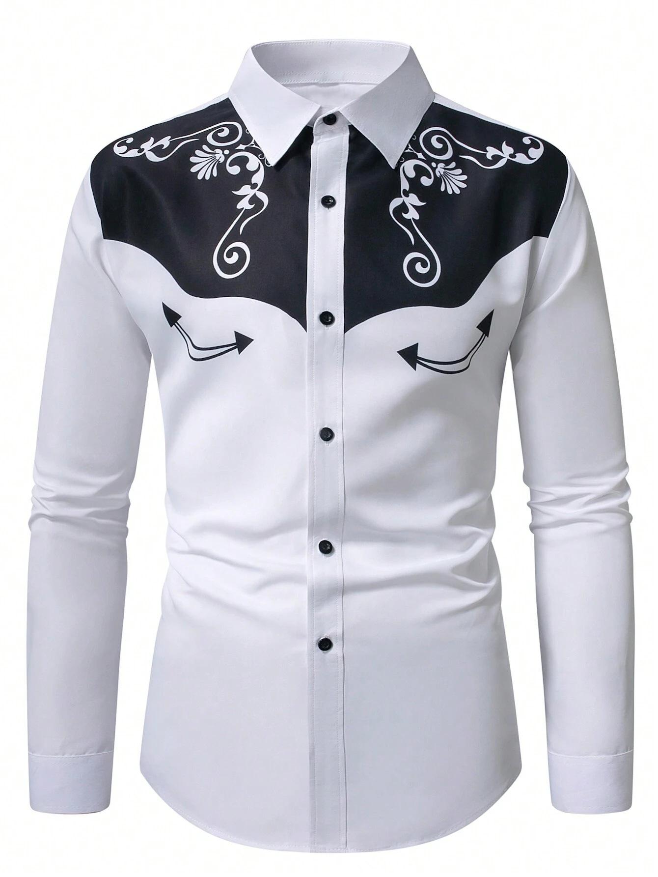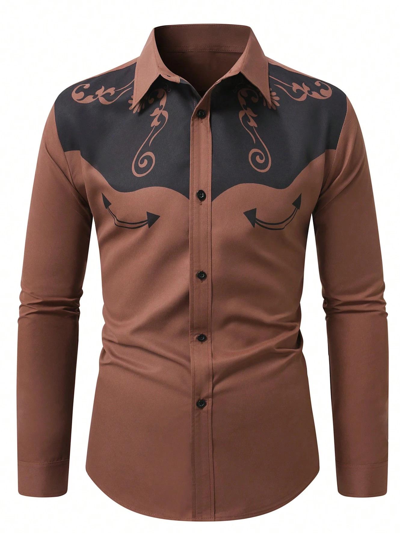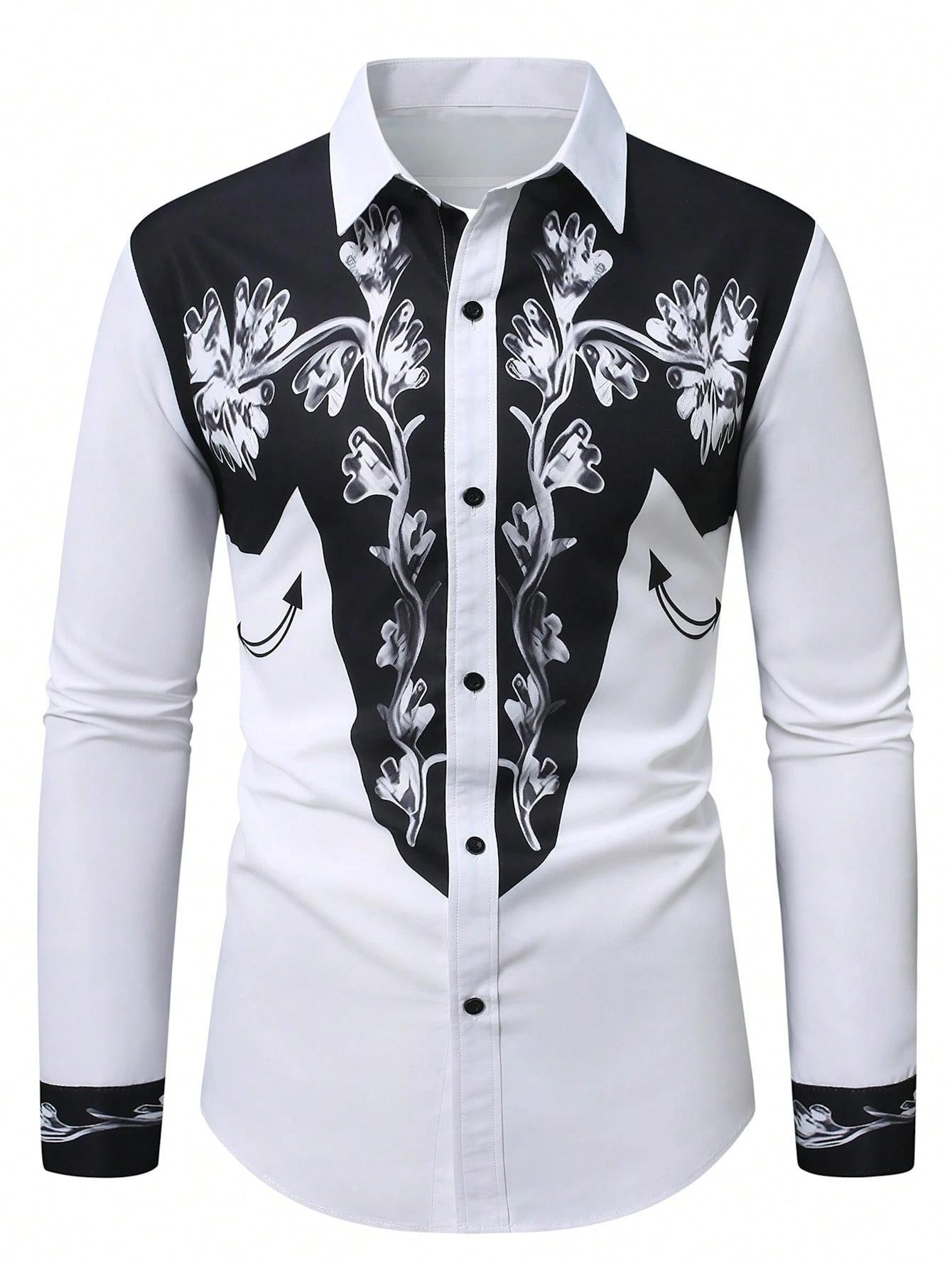 Comercio exterior transfronterizo otoño nuevo talla grande camisa casual de estilo étnico para hombre impresión digital 3D camisa de manga larga para hombre