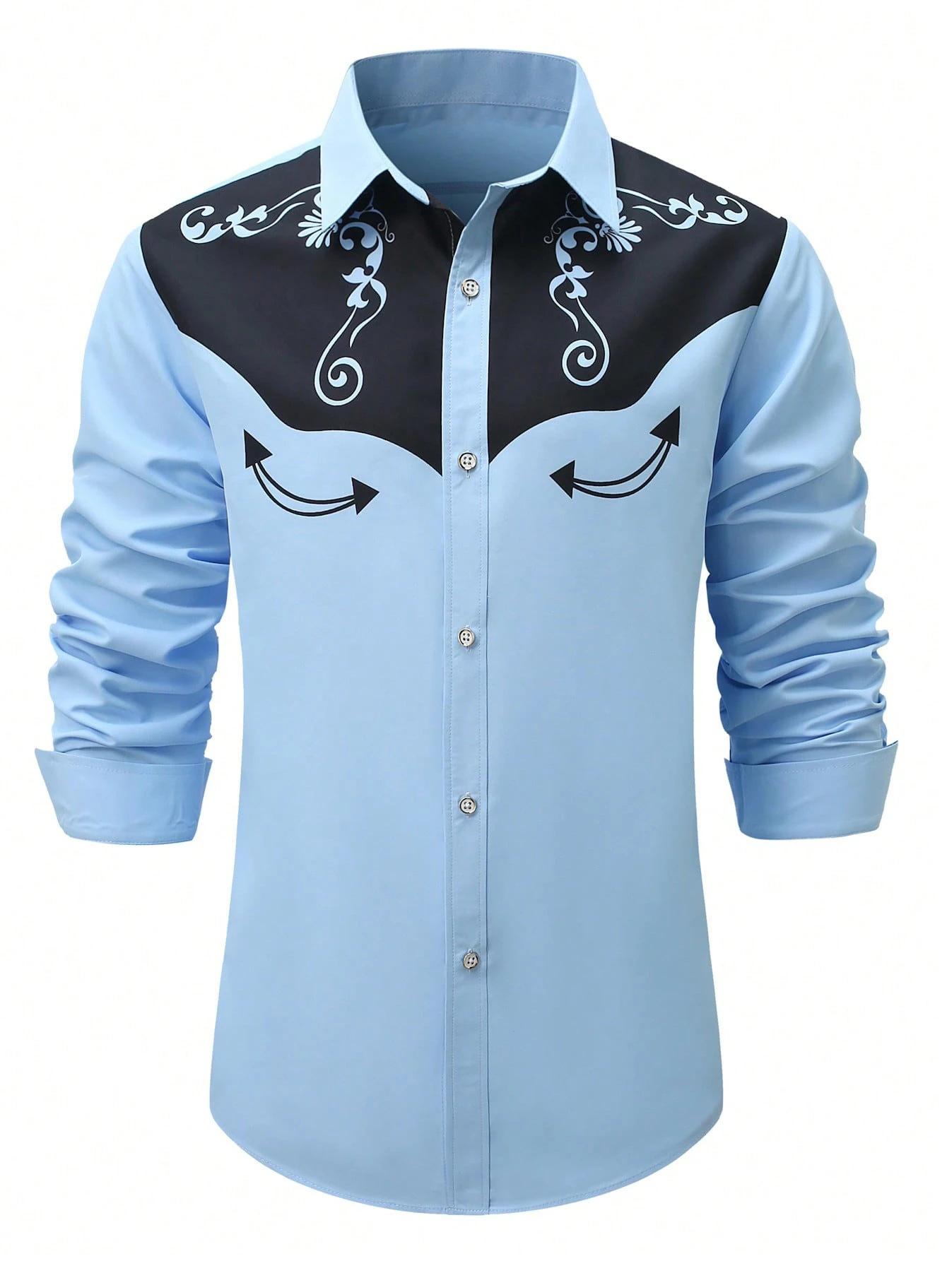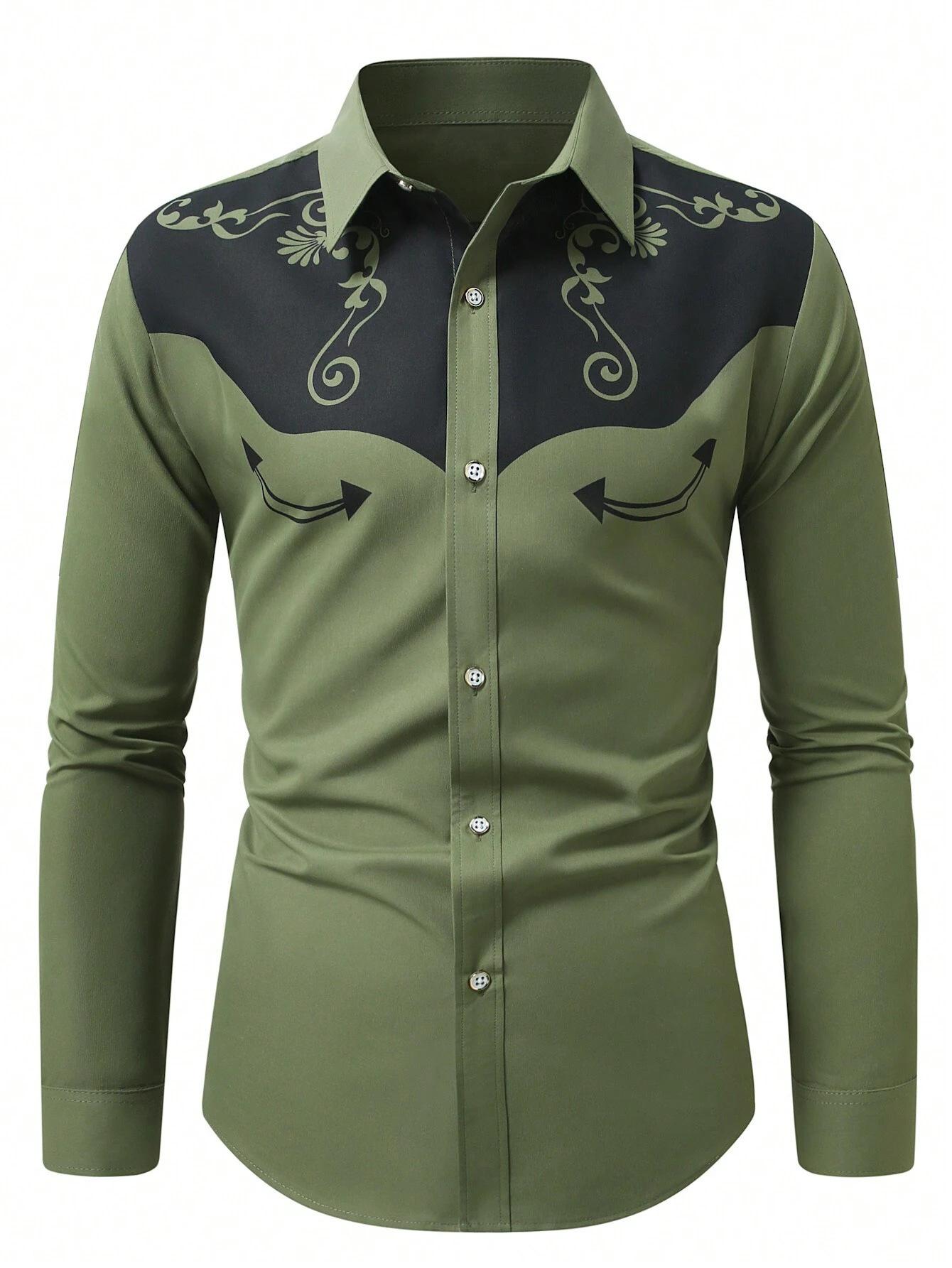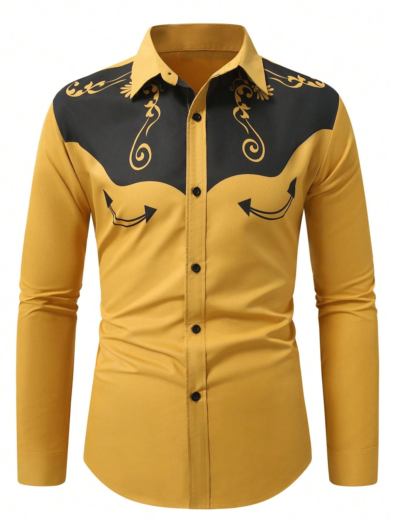 Comercio exterior transfronterizo otoño nuevo talla grande camisa casual de estilo étnico para hombre impresión digital 3D camisa de manga larga para hombre