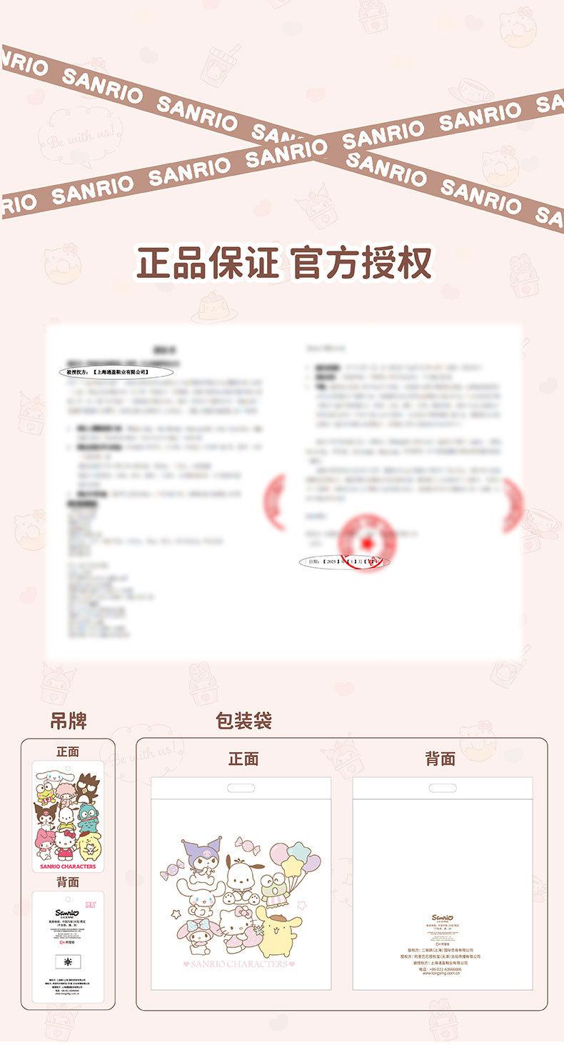 Hellokitty white, Melody pink, Big-eared dog white, Kuromi black