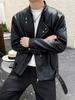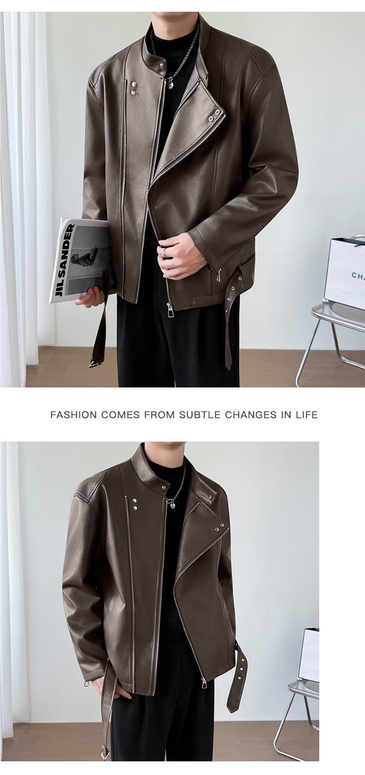 Chaqueta de cuero con cuello alto de diseño para hombre, marca de moda, corte holgado corto, guapo rebelde, motocicleta, nuevo U cuero, otoño e invierno