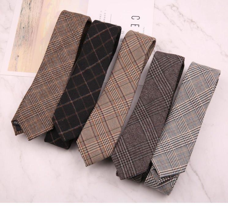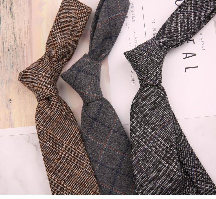 Corbata de Lana Imitación para Hombre 6cm Estrecha Retro Estilo Británico Europeo y Americano Casual Negocios Anudada a Mano Patrón de Cuadros