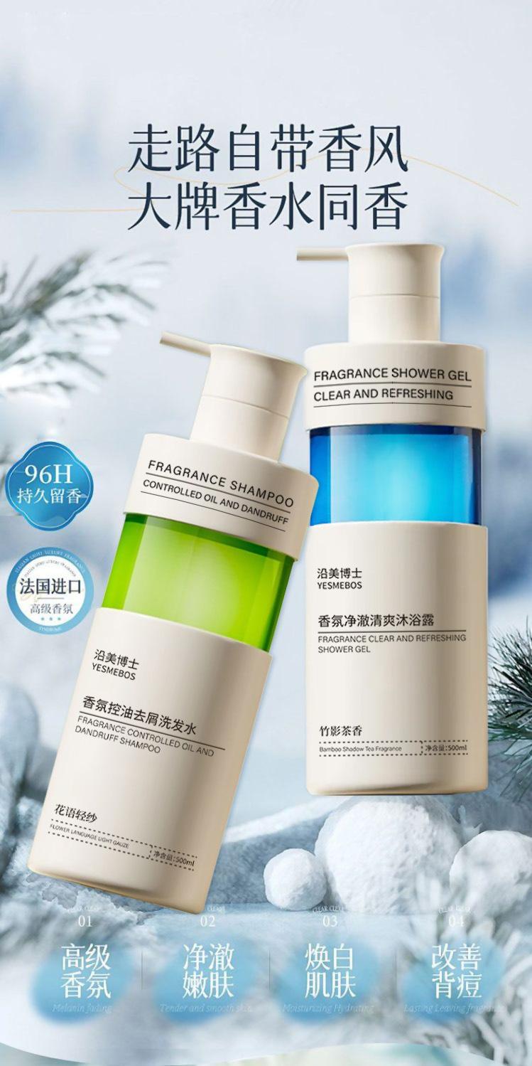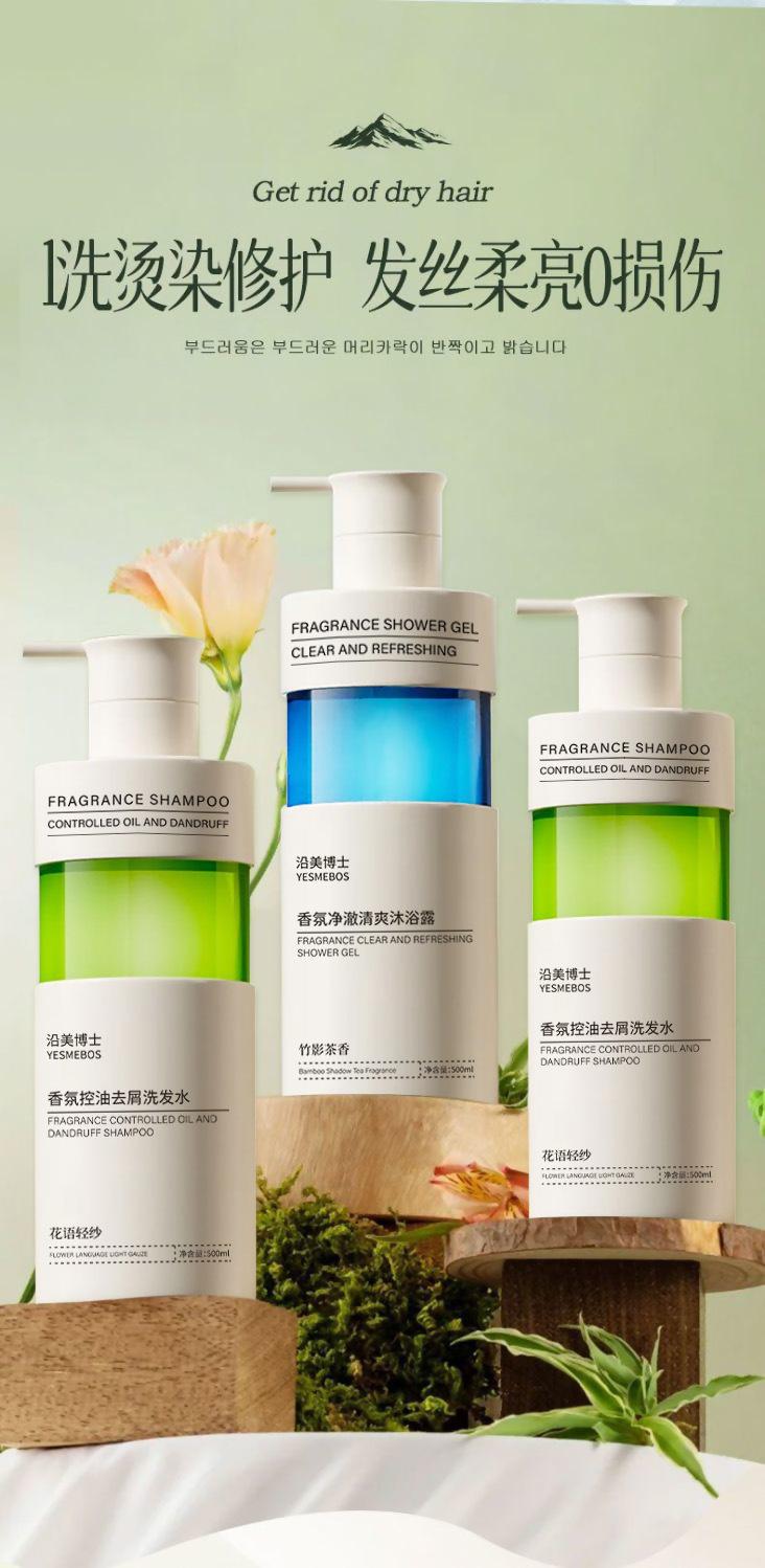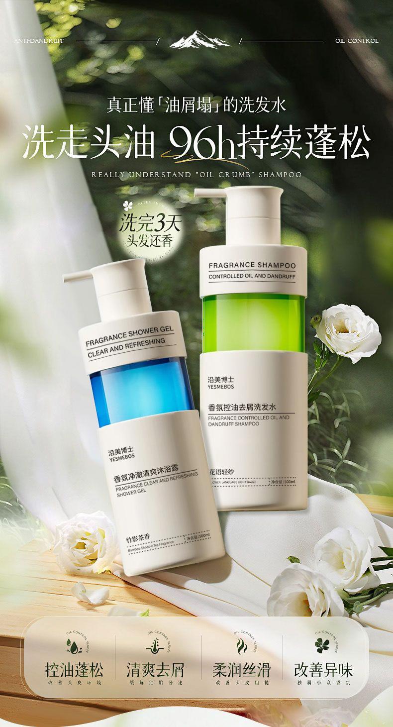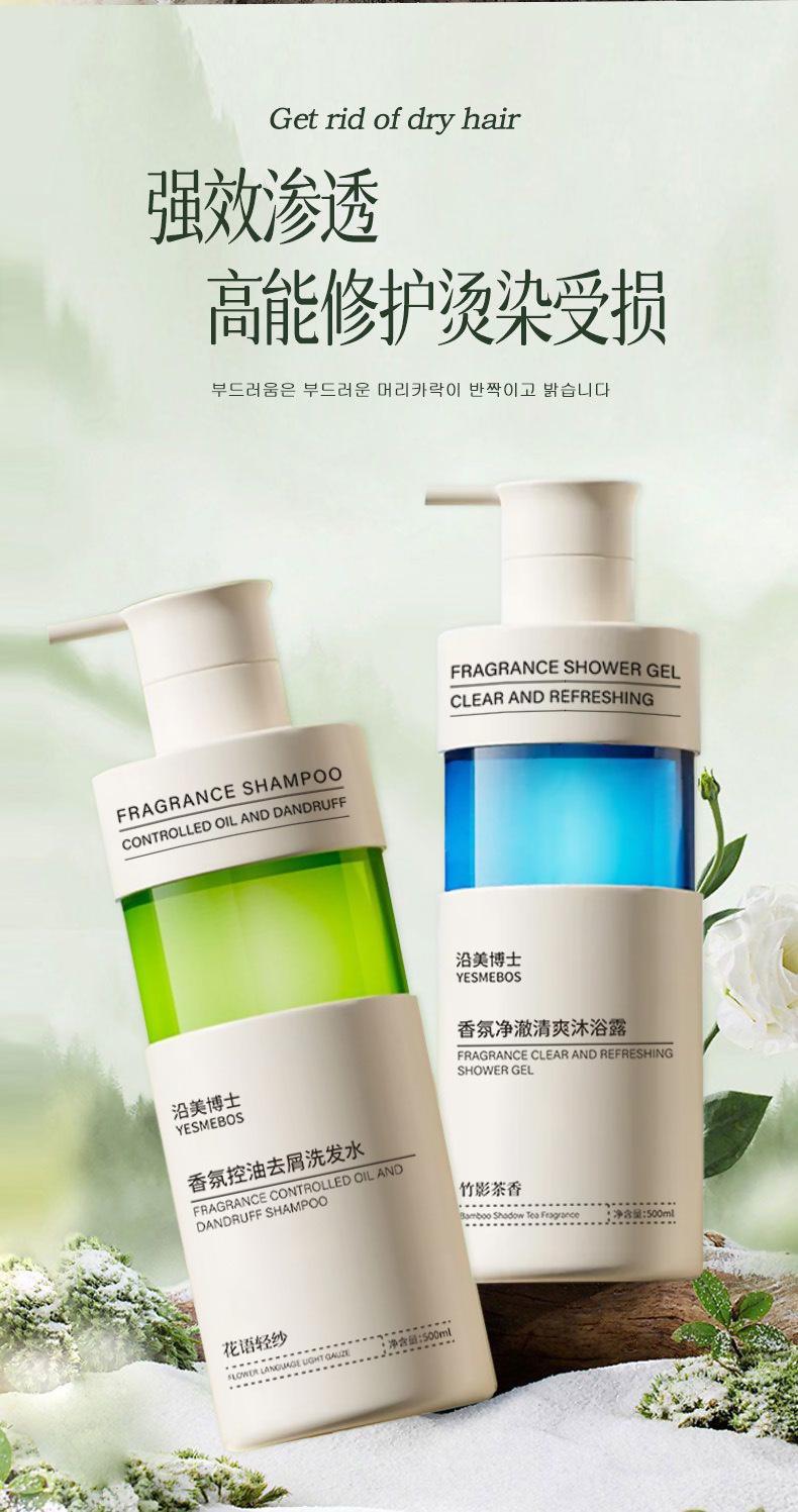 Fragrance Clear Refreshing Shower Gel (Bamboo Shadow Tea Scent), Fragrance Oil Control Anti-Dandruff Shampoo (Floral Whisper)