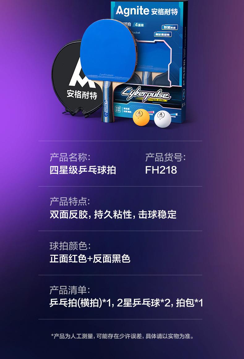 FH218【1 Horizontal Racket + 2 Ping Pong Balls + 1 Racket Bag】