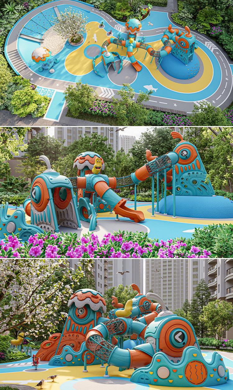 Combinación de Tobogán Grande para Exterior con Estructura para Trepar, Equipo de Diversión Infantil para Exterior sin Motor, Fabricante de Instalaciones para Parque Infantil