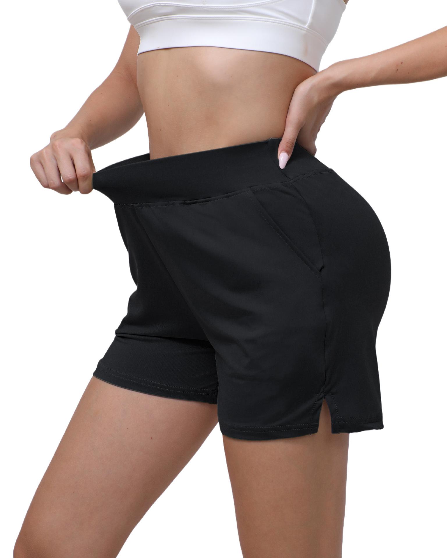 Pantalones de Yoga Fitness de Verano para Mujer Nuevos de Cuatro Puntos Sueltos Casuales para Correr de Secado Rápido Bolsillo Trasero en la Cintura