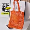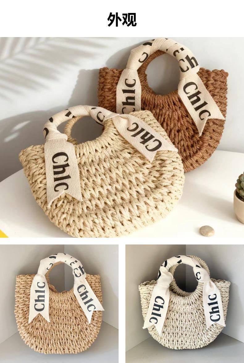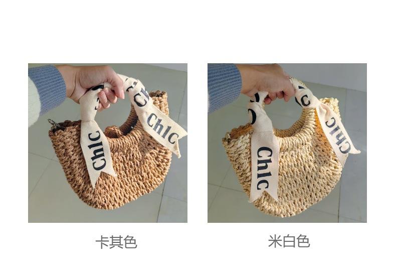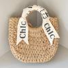 Bolso de paja con letras moderno y versátil, bolso de mano con cinta, bolso tejido versátil, bolso para vacaciones en la playa, bolso de playa para mujer