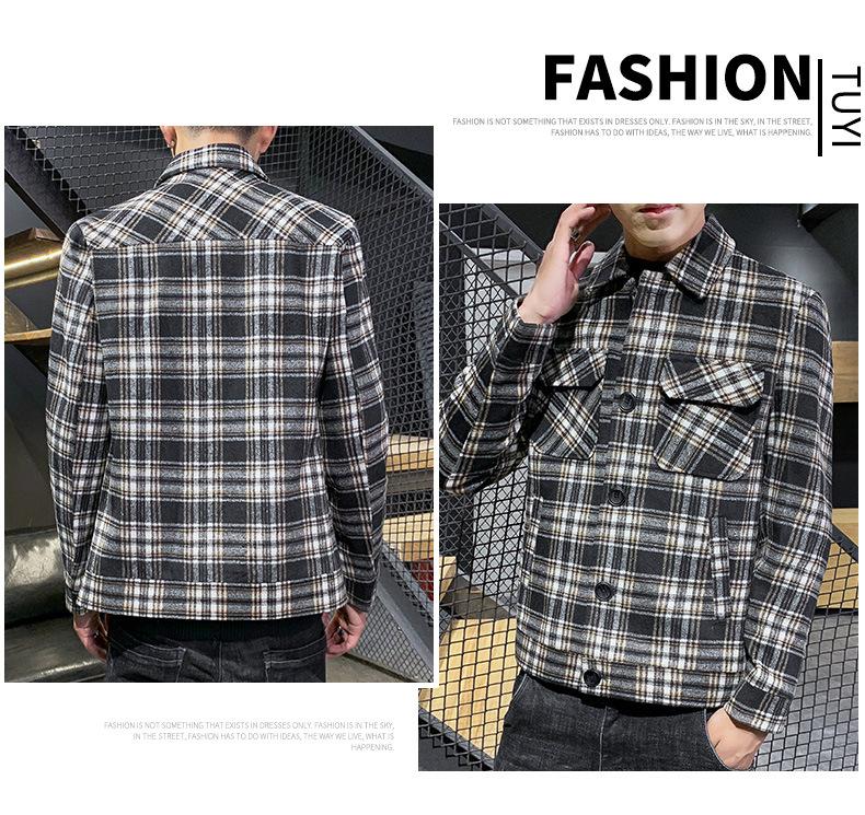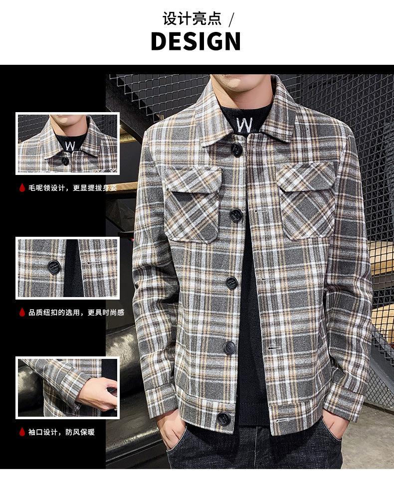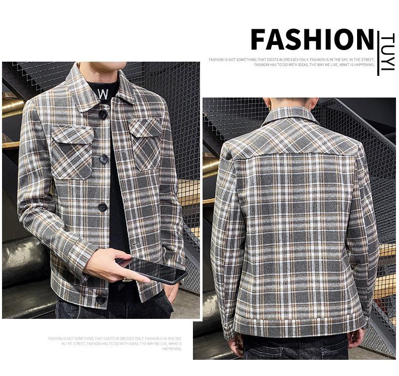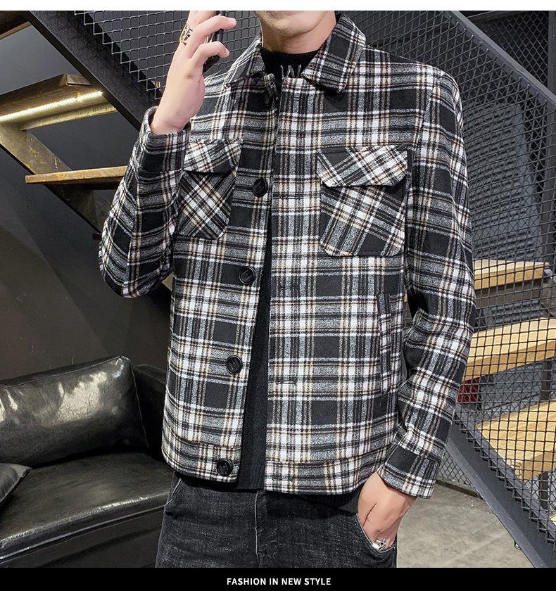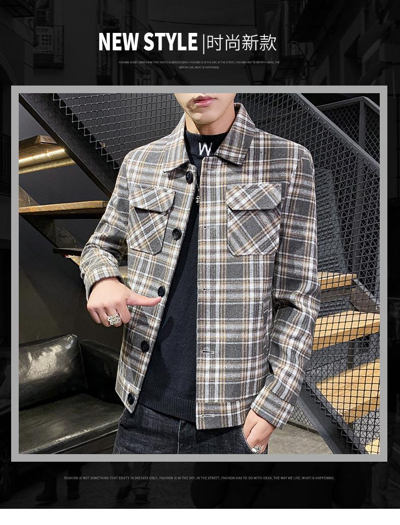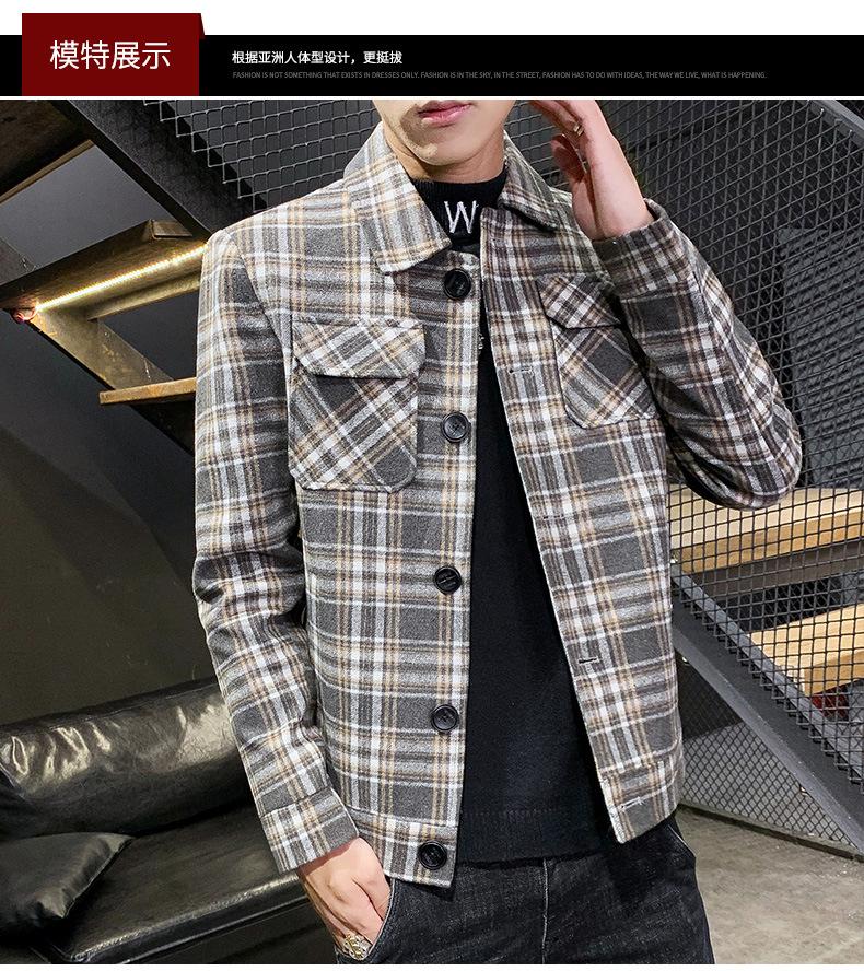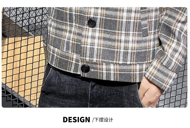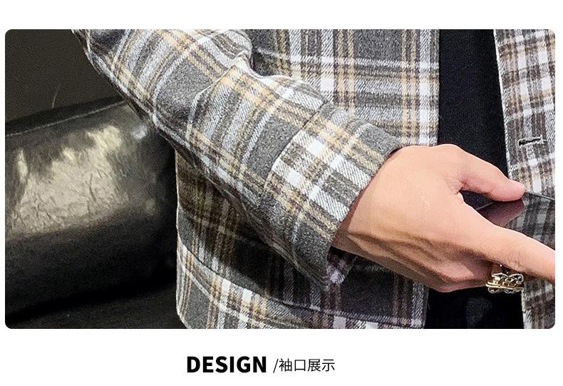 Abrigo de Hombre de Una Hilera 2021 Otoño e Invierno Chaqueta Corta de Lana Estilo Coreano Ajustado Guapo Chaqueta de Lana de Pata de Gallo para Jóvenes