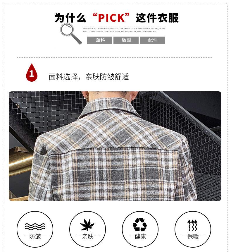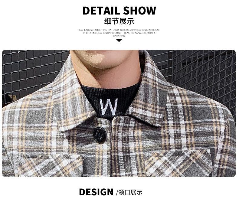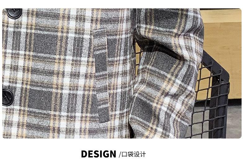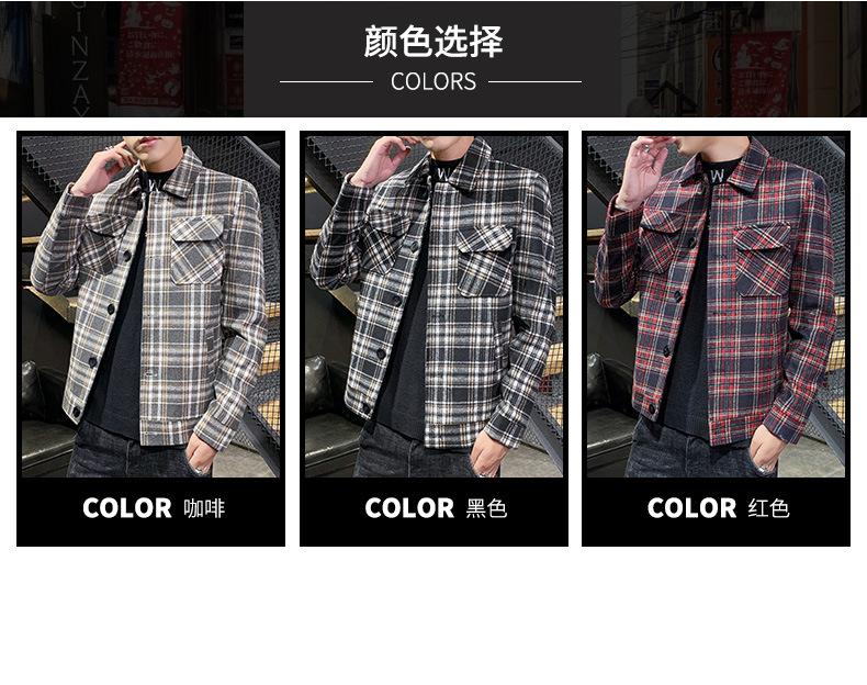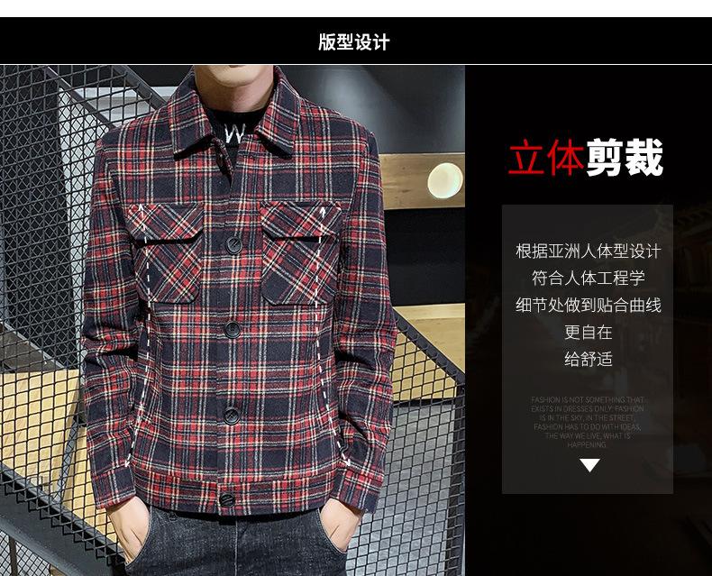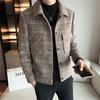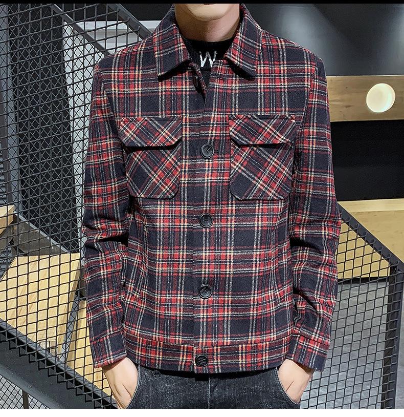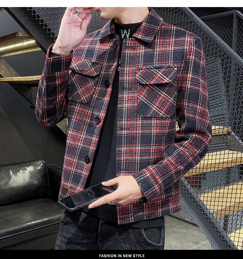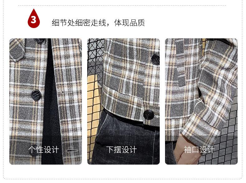 Abrigo de Hombre de Una Hilera 2021 Otoño e Invierno Chaqueta Corta de Lana Estilo Coreano Ajustado Guapo Chaqueta de Lana de Pata de Gallo para Jóvenes