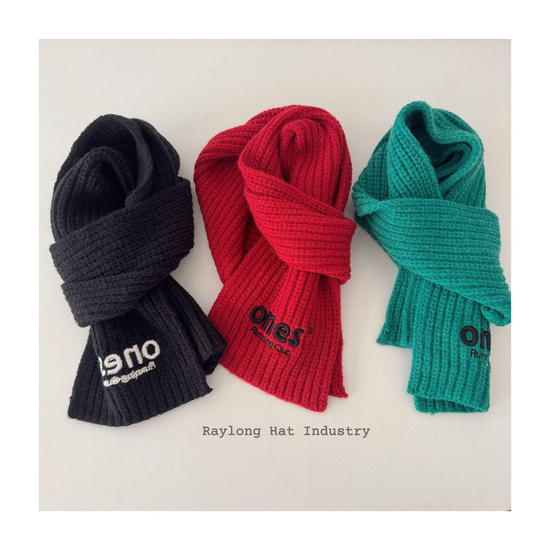 Bufanda de punto para niños con nueva letra bordada, para niños y niñas, para invierno, para exteriores, a prueba de frío y cálida, de lana, calentador de cuello para bebé