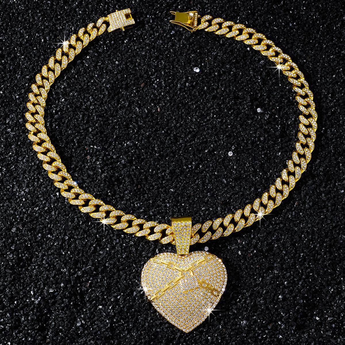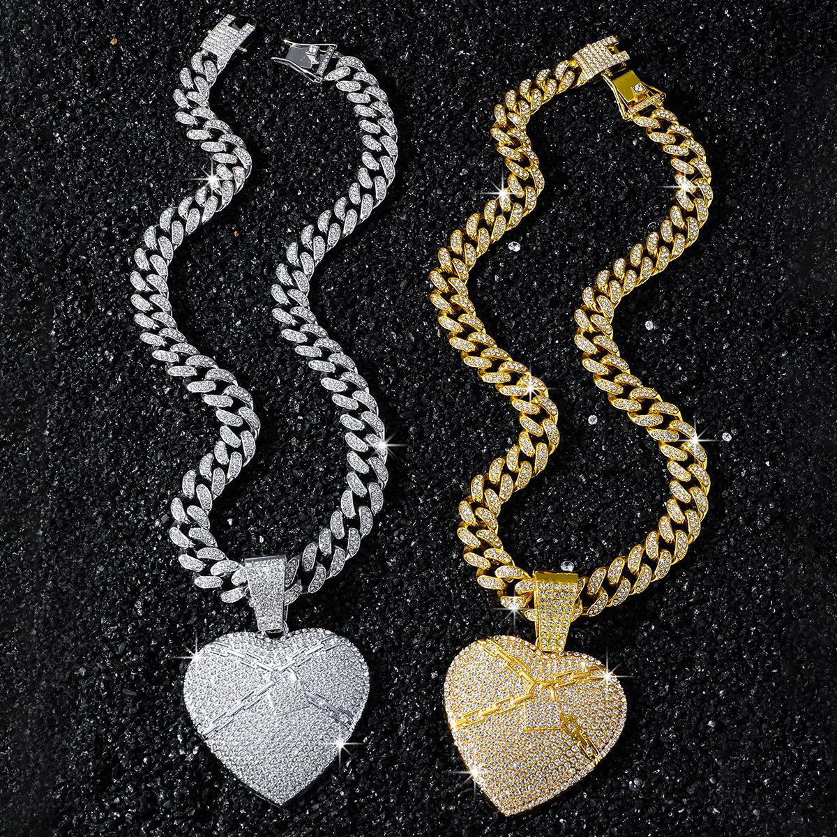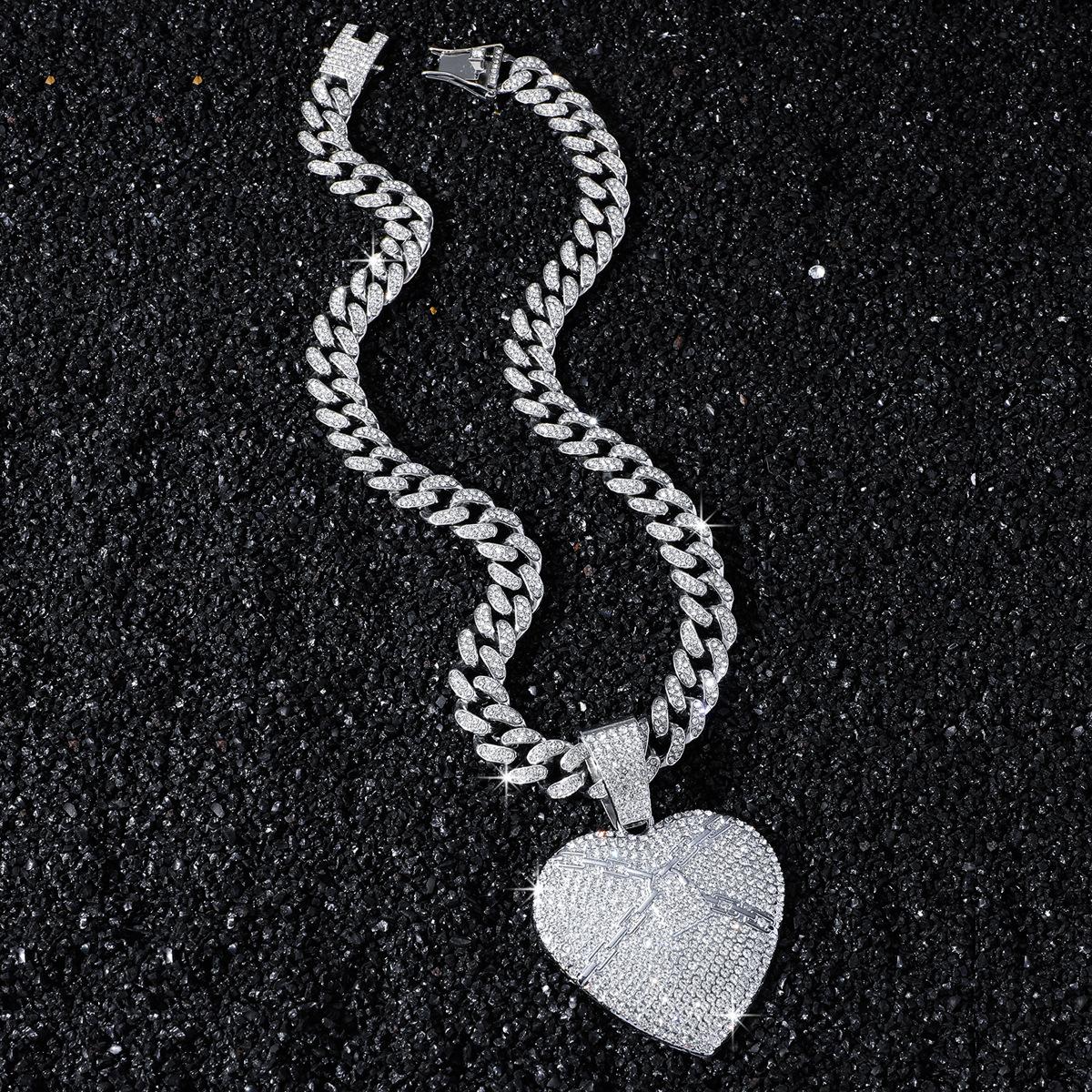 Collar dominante para hombre con colgante de letra de diamante completo, cadena cubana ancha, estilo hip hop, hip-hop, baile callejero europeo y americano