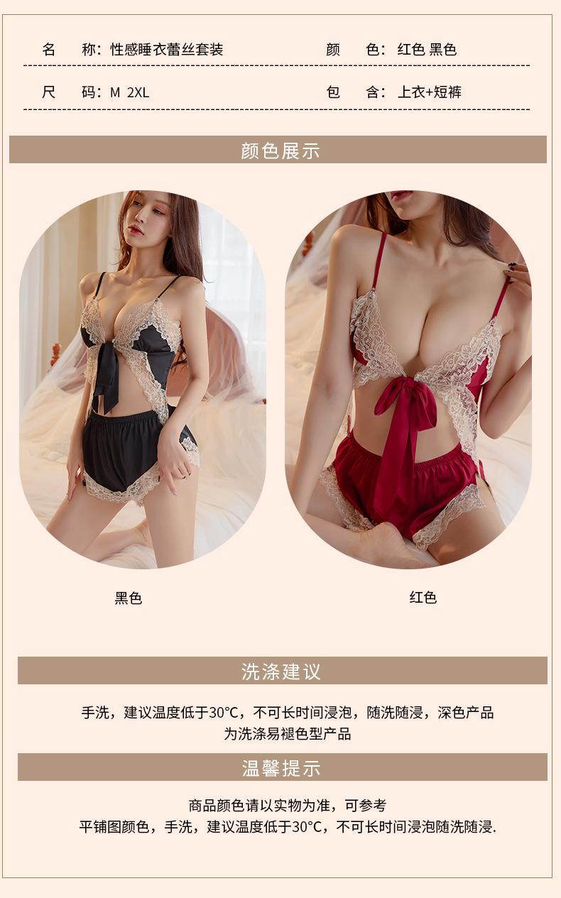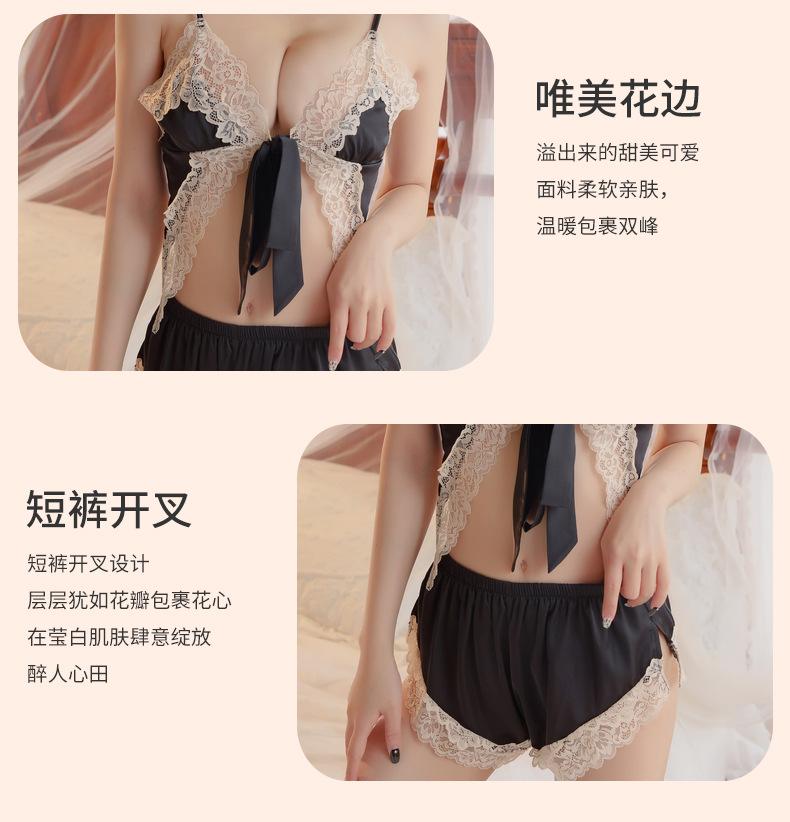 Lencería Sexy Pijama Sexy Personalizado Encaje Tentación Estilo Lujuria Pura Shorts con Tirantes Ropa para el Hogar Conjunto de Dos Piezas 1007