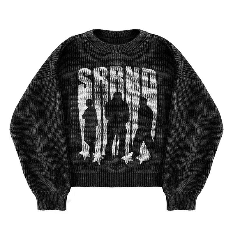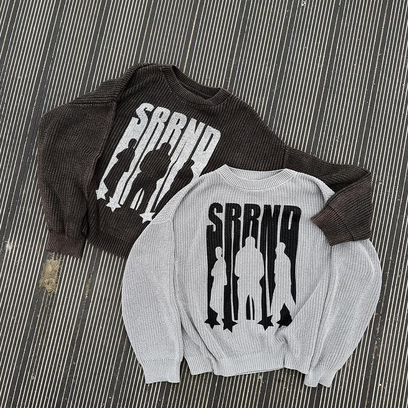 Suéter americano oversize holgado para hombre y mujer de otoño e invierno grueso para llevar debajo cuello redondo personalidad letra ganchillo cálido jersey