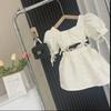 Vestido de Niña Manga Farol Estilo Occidental Verano 2024 Nuevo Vestido Blanco de Temperamento