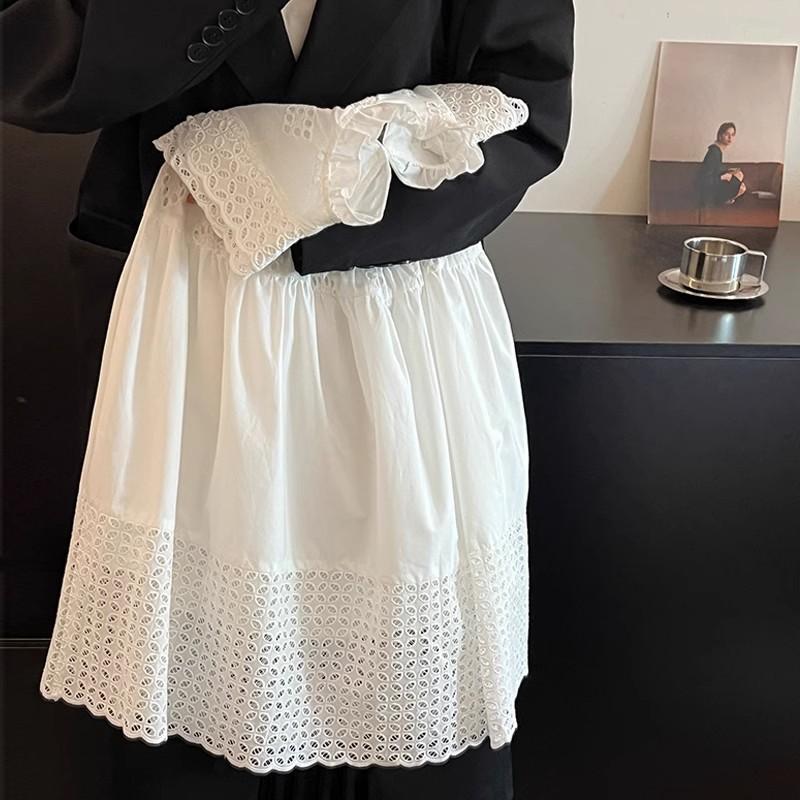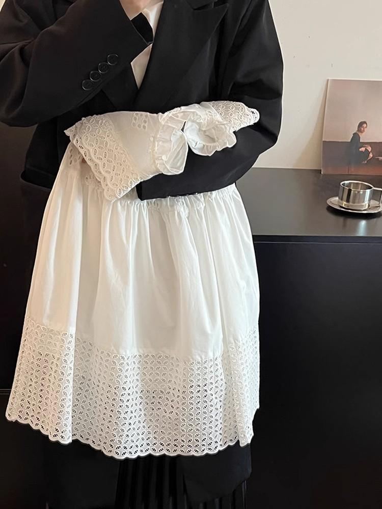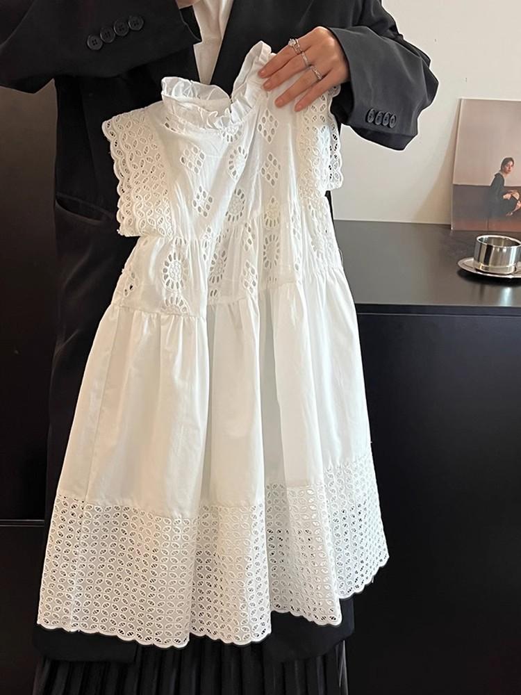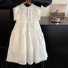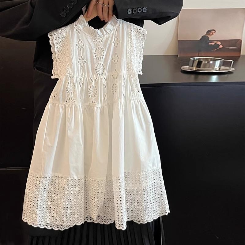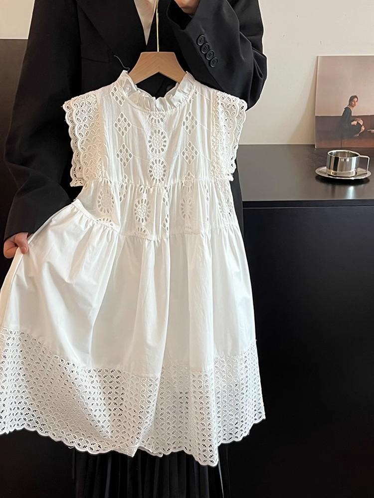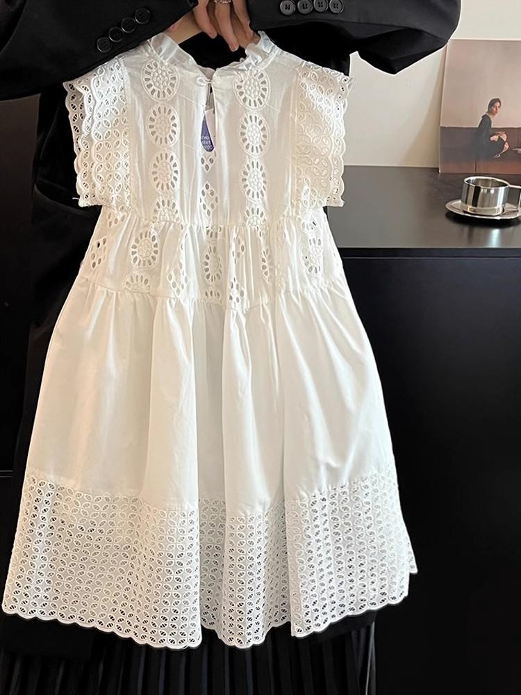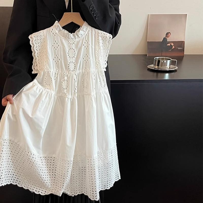 Moda Coreana Ropa de Verano para Niños 24 Nuevo Estilo Vestido de Princesa con Encaje Calado para Niñas Blanco Vestido para Niños Mediano y Grande