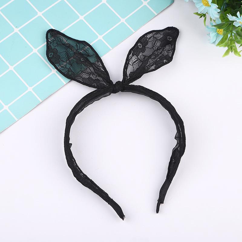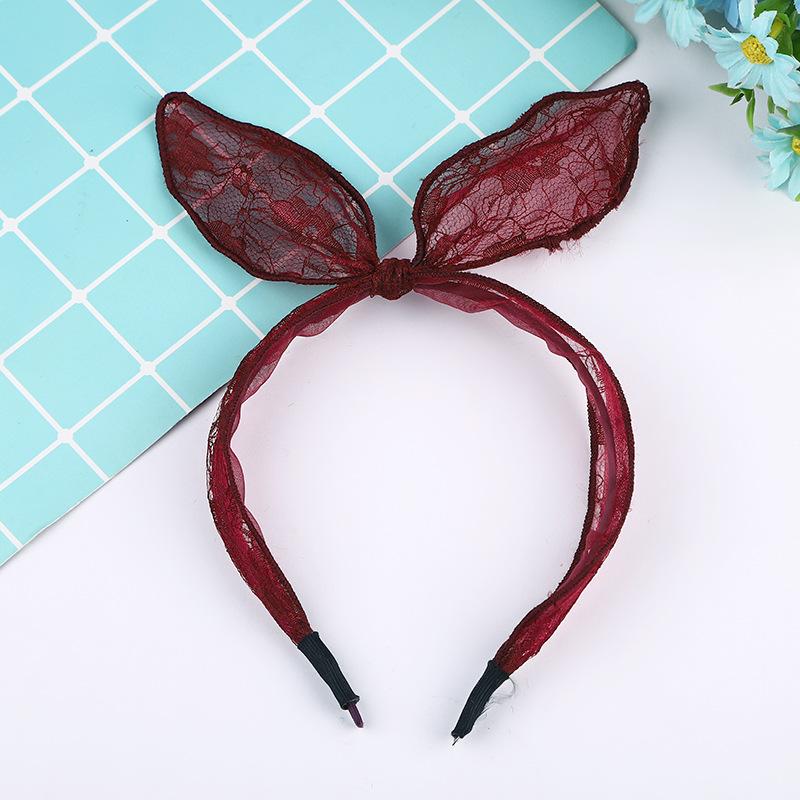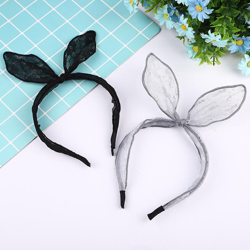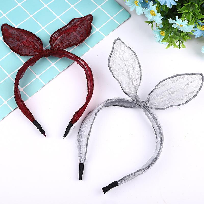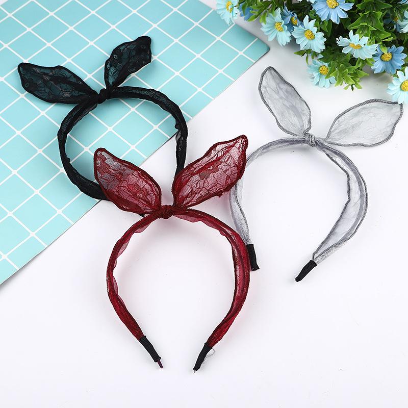Elegante Femenino Lindo Multicolor Encaje Orejas de Conejo Moño Diadema Accesorio para el Cabello Estilo Fresco Dulce Envolvente