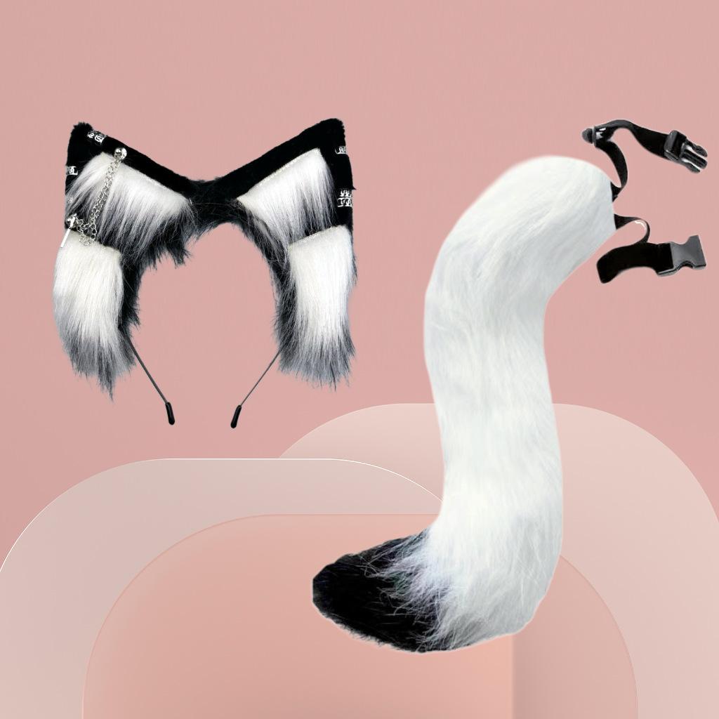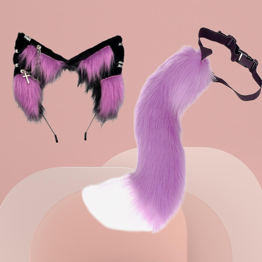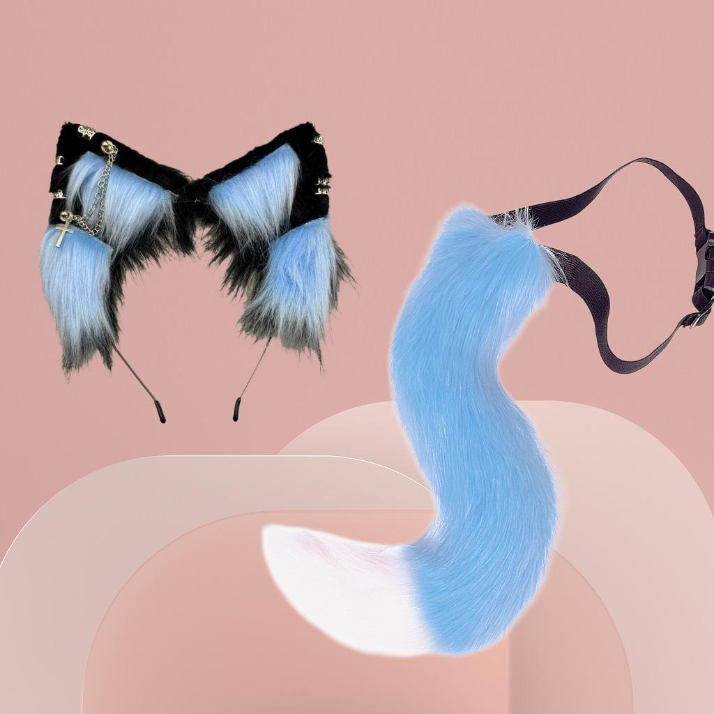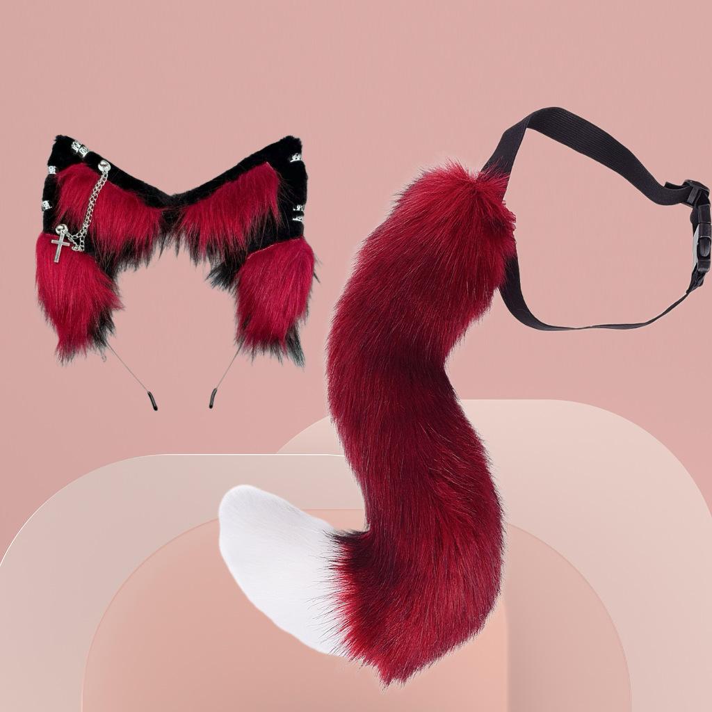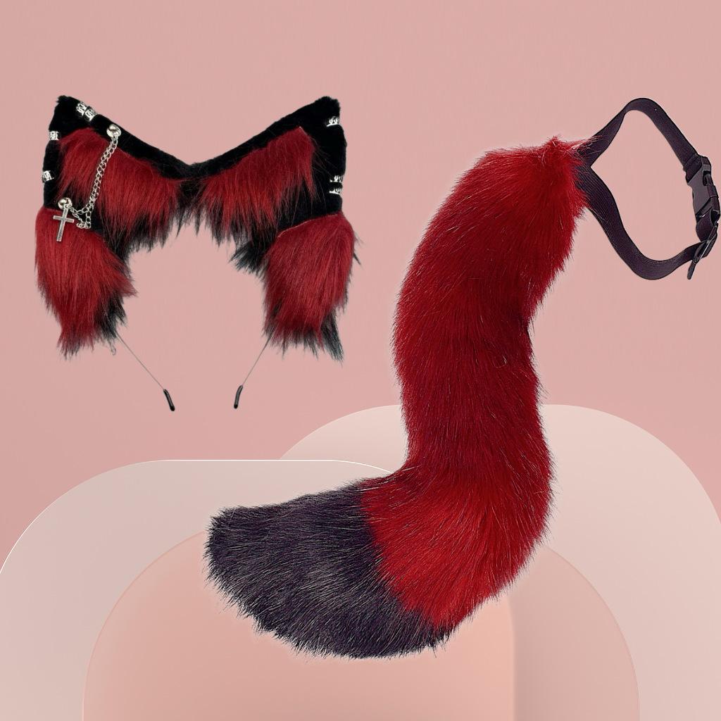 Set Diadema de Zorro Degradado Bicolor Lolita Japonesa Orejas de Gato Felpa Tarjeta Accesorios para el Cabello Mujer Hecho a Mano Simulación Orejas de Animal