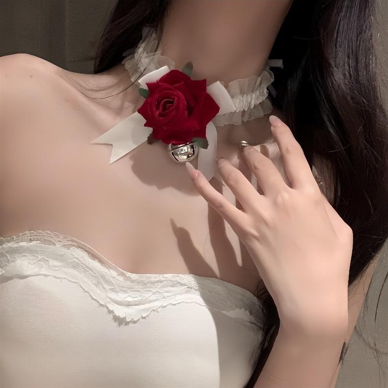 Collar Choker de Encaje con Lazo de Campana Grande de Rosa para Mujer Accesorios Correa para el Cuello Cadena Clavicular