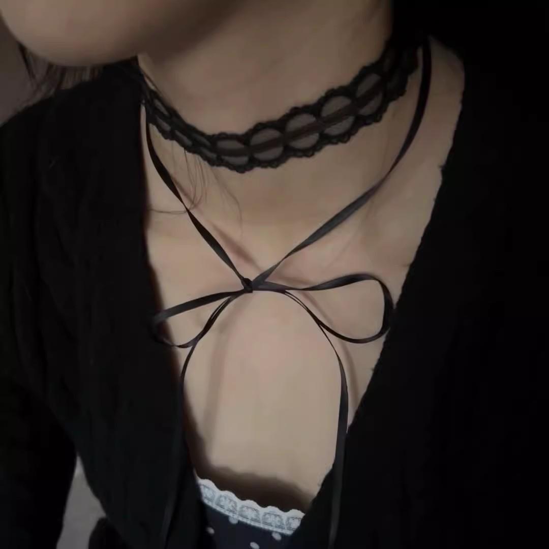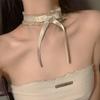 Gargantilla de Encaje Blanco Lazo Nuevo Collar de Correa Dulce Collar Largo con Cadena para Clavícula Accesorios para el Cuello