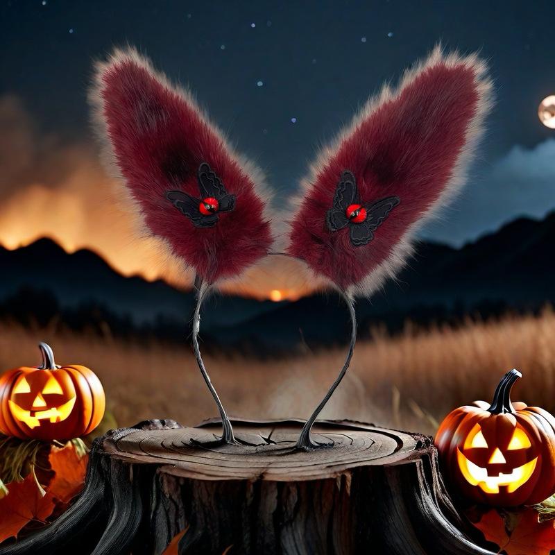 Diadema de Orejas de Conejo de Peluche Ojo del Diablo Accesorios de Pascua Diadema de Halloween Deviruchi Accesorios para el Cabello Femeninos Novedad