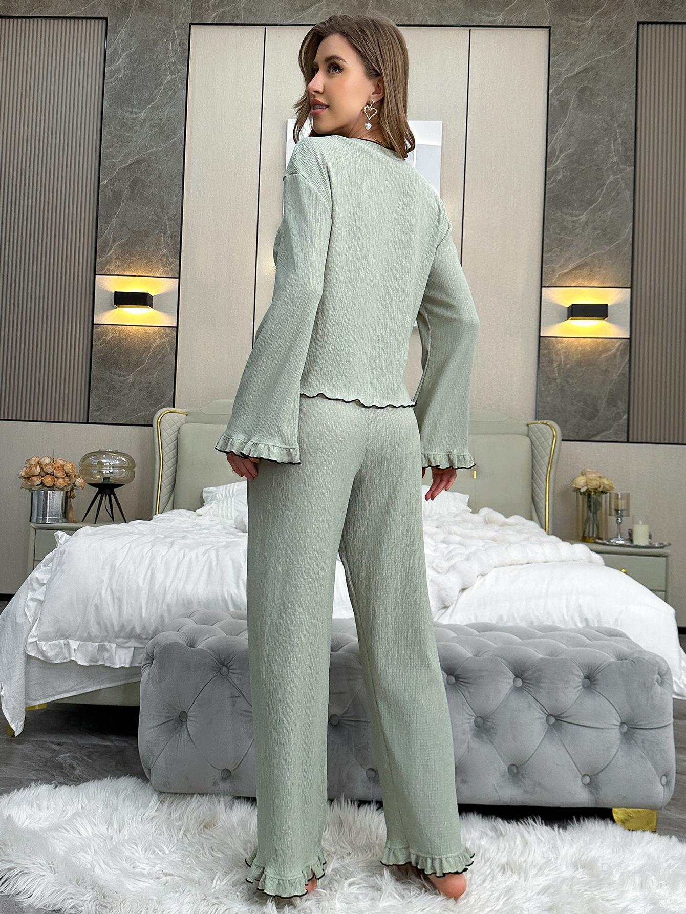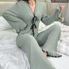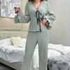 Pijama popular de tirantes estilo I N S de verano con lazo, pantalones delgados de manga larga, conjunto de dos piezas de color puro para estar en casa