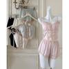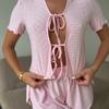 Pijama Rosa de Manga Corta Estilo Ins Transfronterizo Encaje Encaje Shorts Cómodos Estilo Carmful Verano Ropa de Casa para Mujer