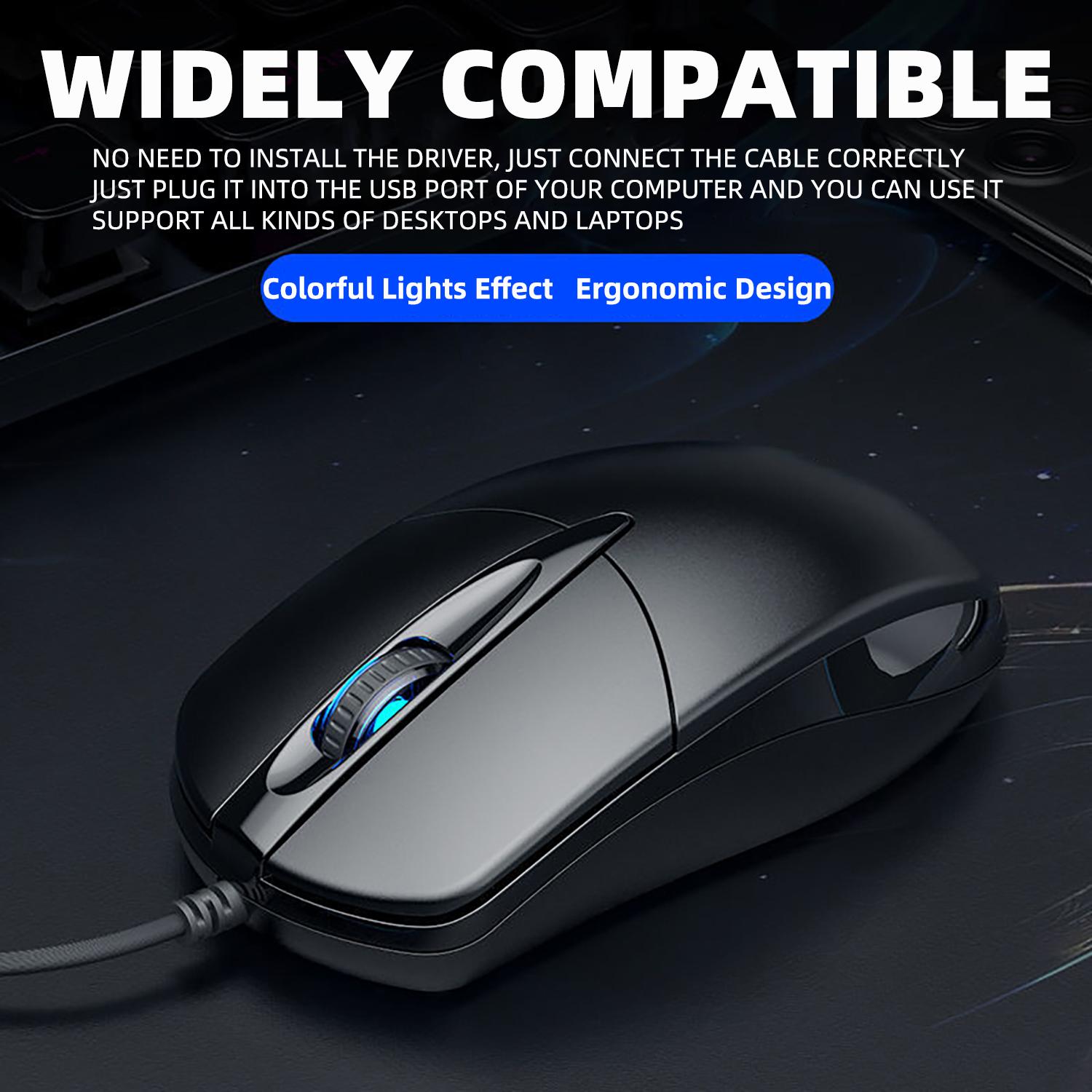 Diseño Ergonómico y Efectos de Luz: Con un diseño elegante y moderno con un perfil simple y compacto. Su forma ergonómica se adapta cómodamente a la mano para un uso prolongado. La rueda de desplazamiento incorpora efectos de luz coloridos.