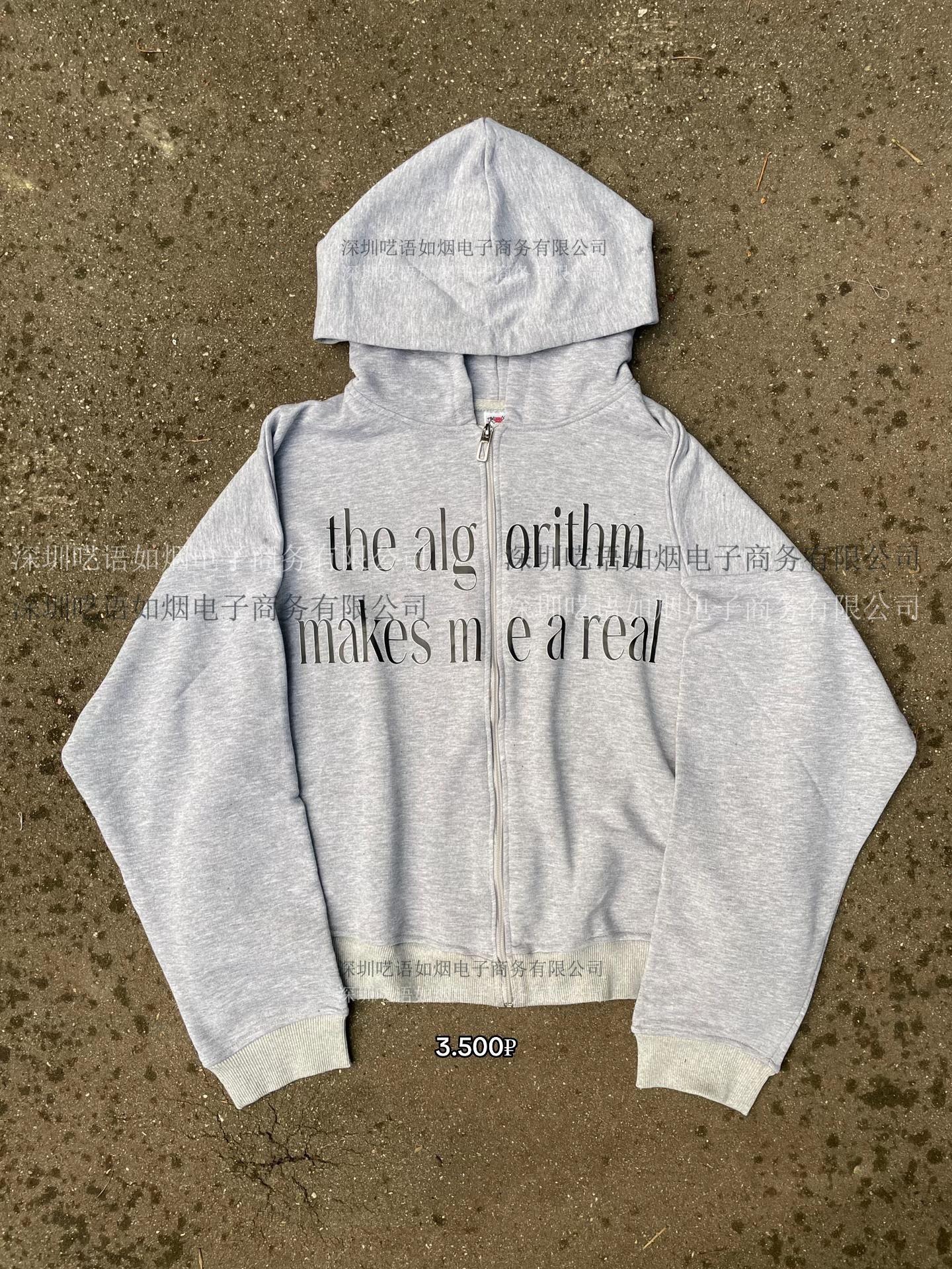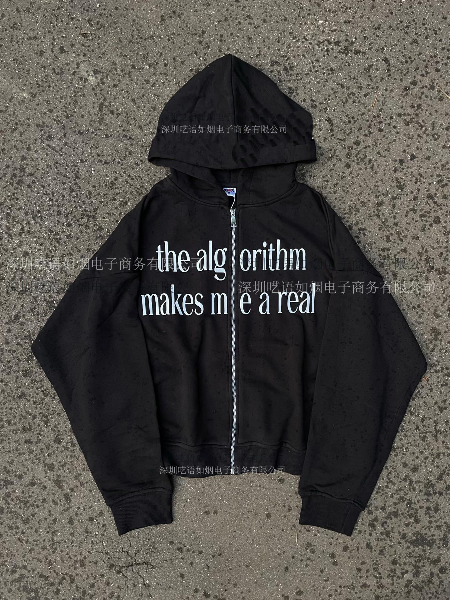 Sudadera con capucha con cremallera y estampado de letras de comercio exterior transfronterizo europeo y americano, manga larga, estilo jersey, sudadera con capucha, chaqueta vintage, ropa de calle
