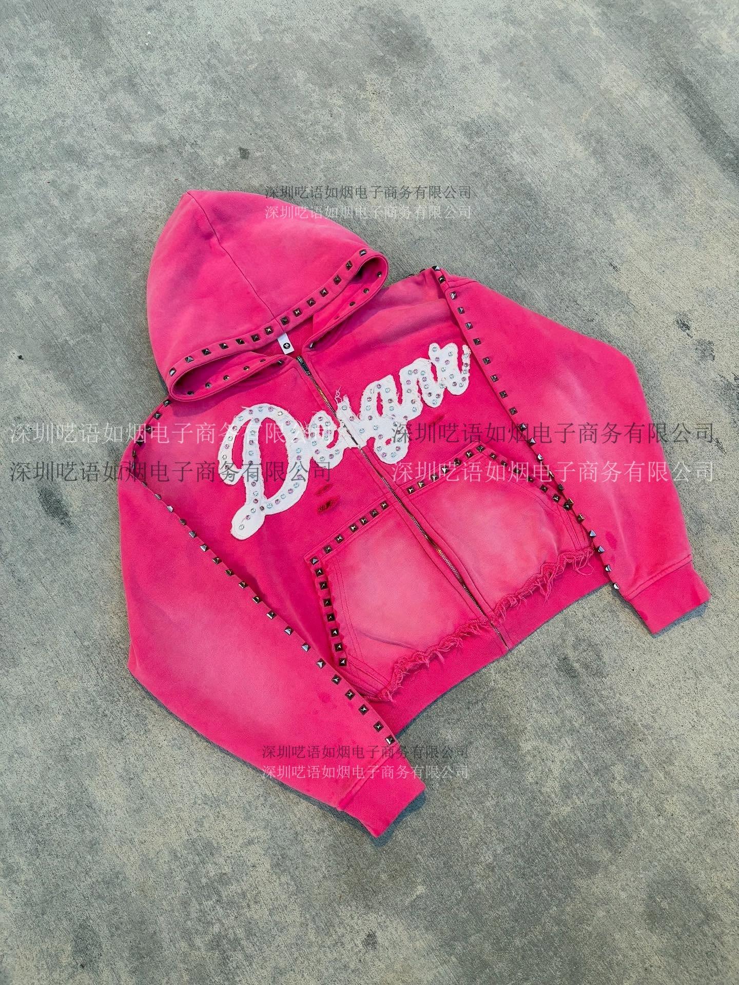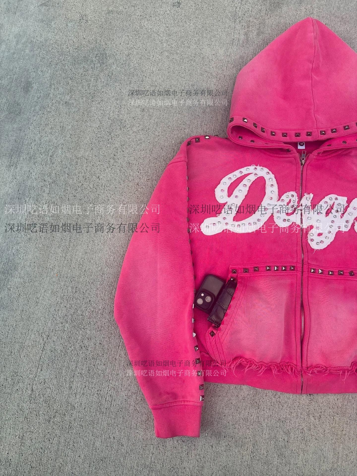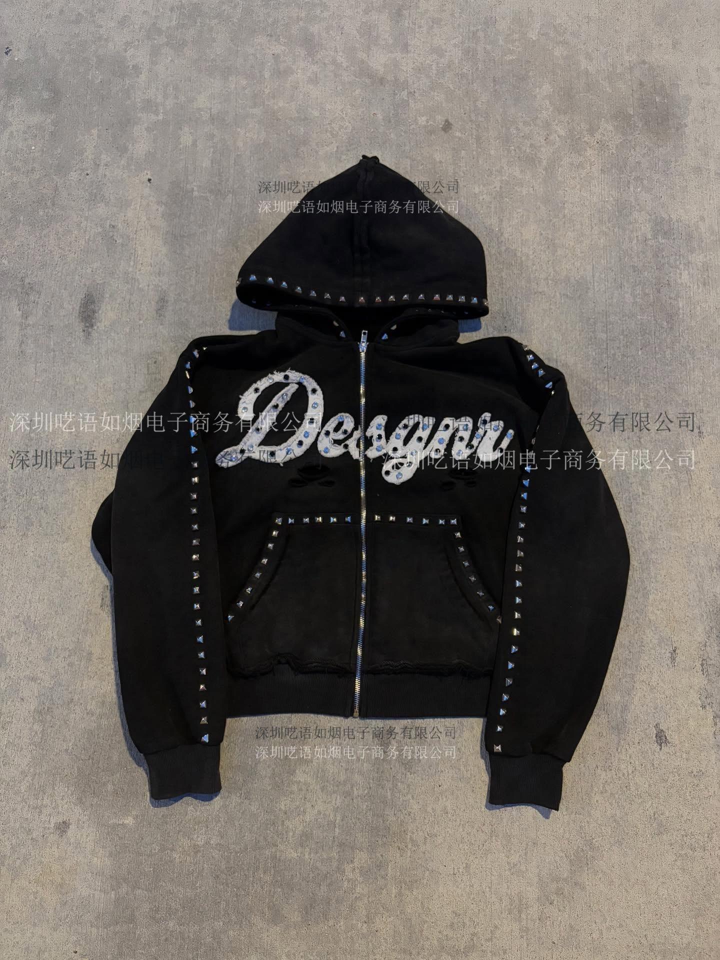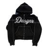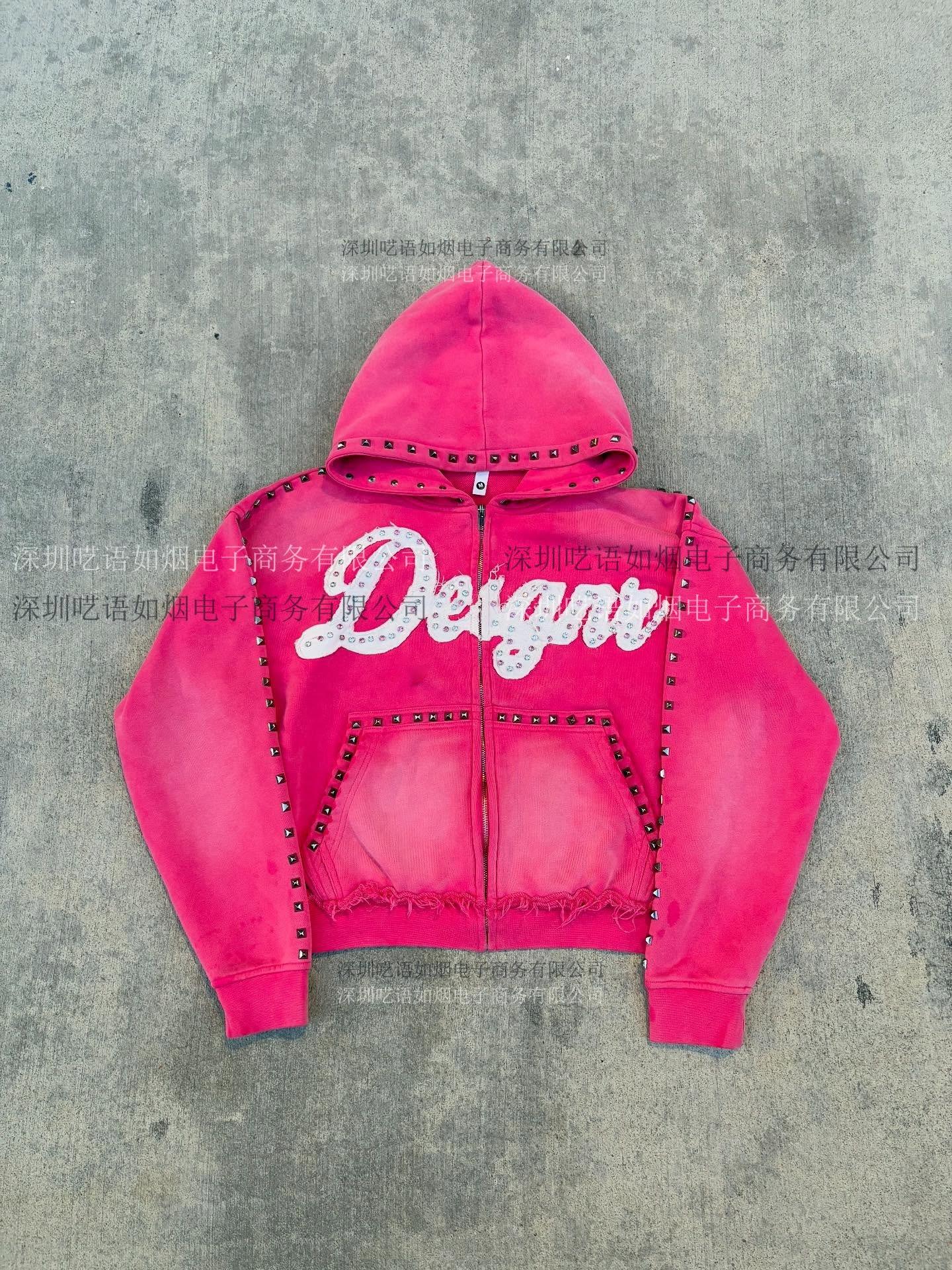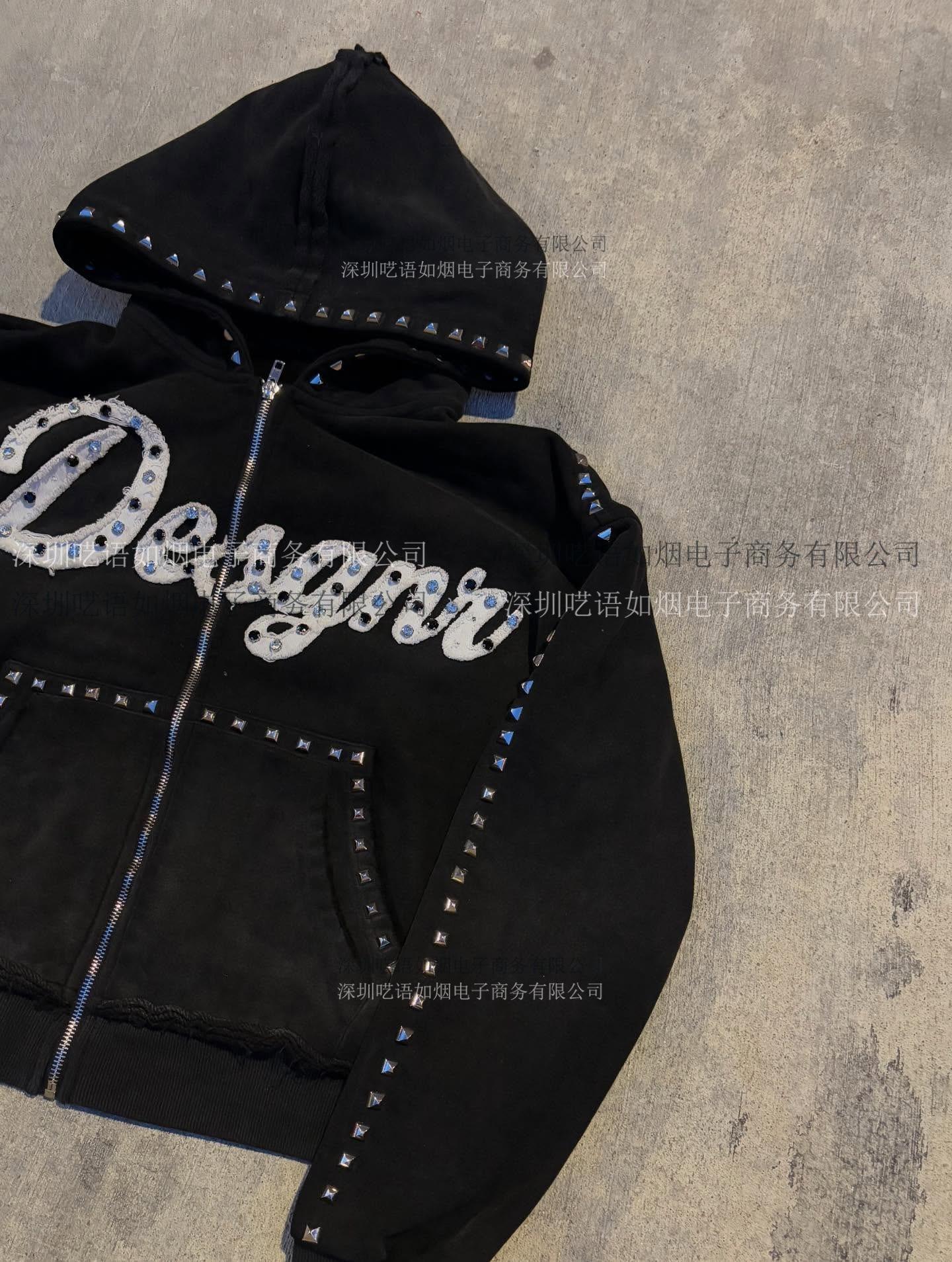 Sudadera con capucha y cremallera de manga larga con bordado y pedrería caliente para comercio exterior transfronterizo europeo y americano, chaqueta vintage, ropa de calle