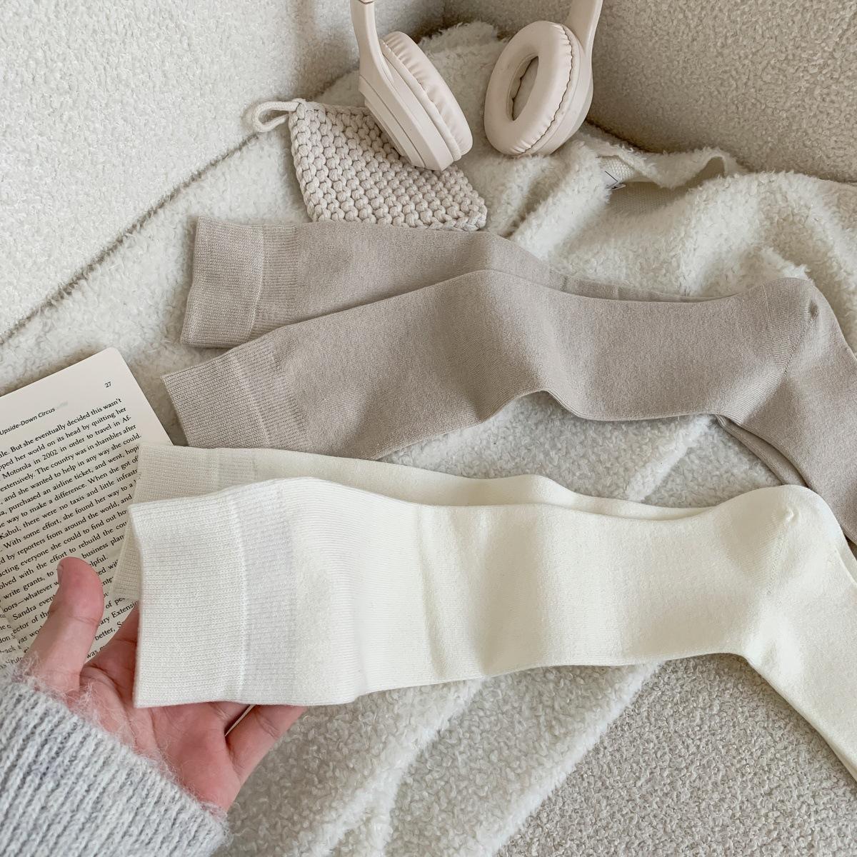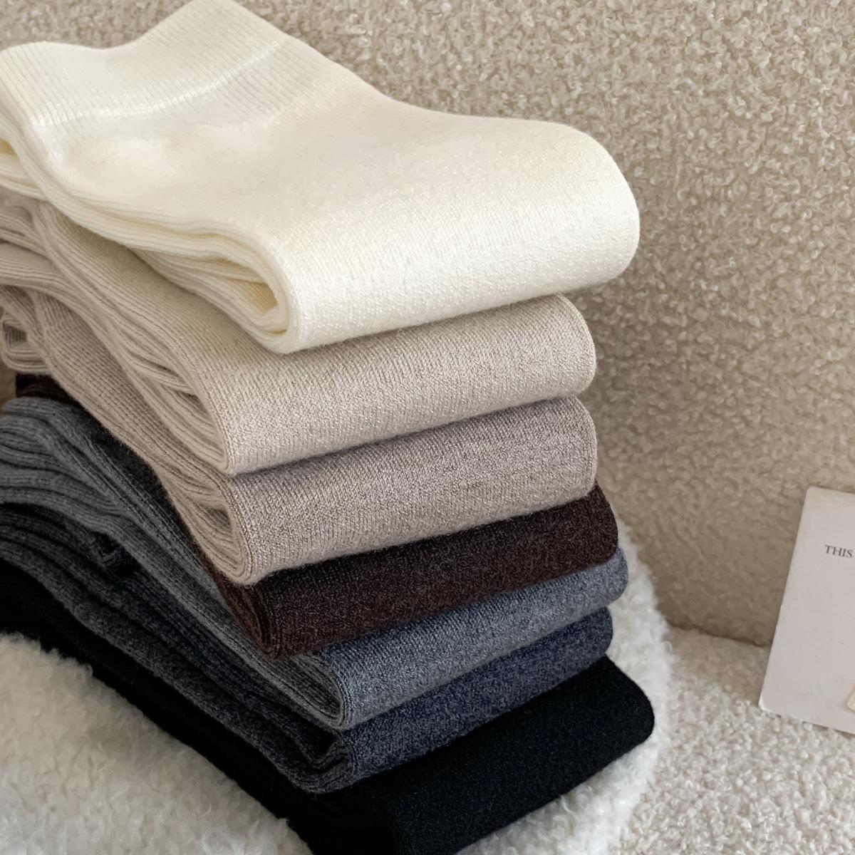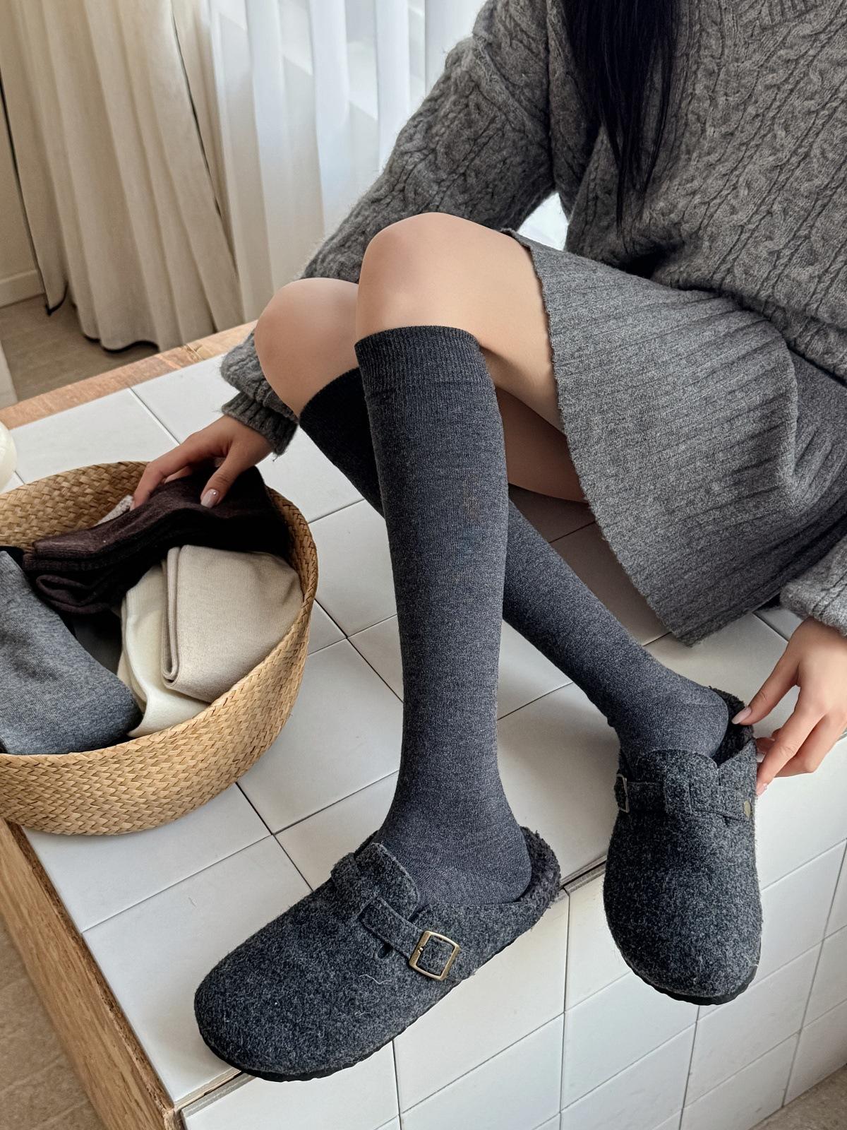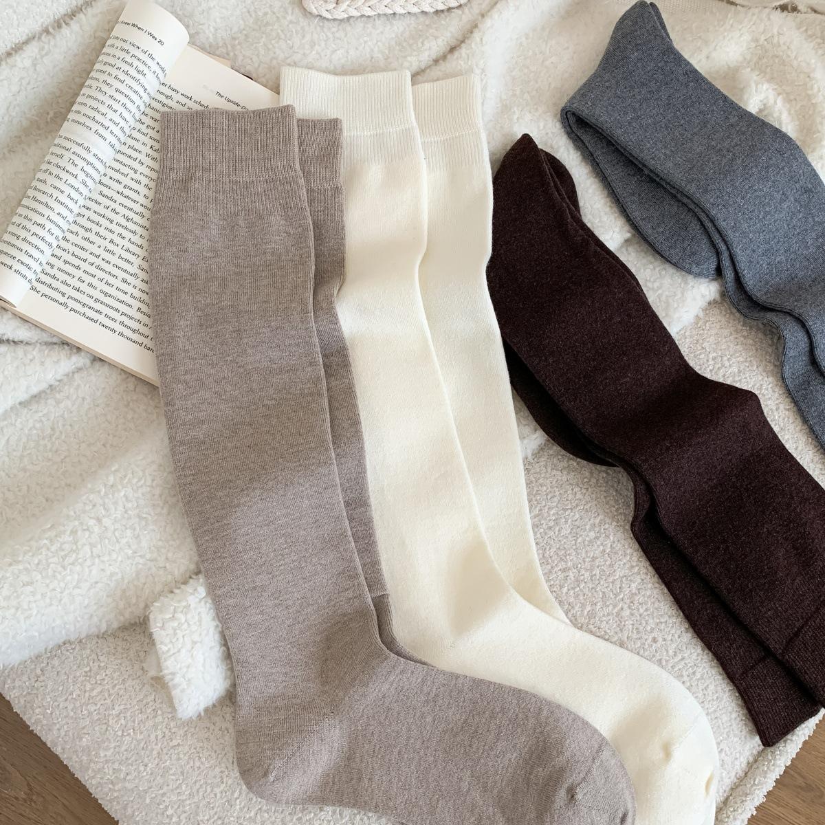 Calcetines de pantorrilla de lana de seda de morera de alta calidad Otoño Invierno Nuevos Calcetines hasta la rodilla de color sólido estilo coreano Calcetines largos cálidos para mujer